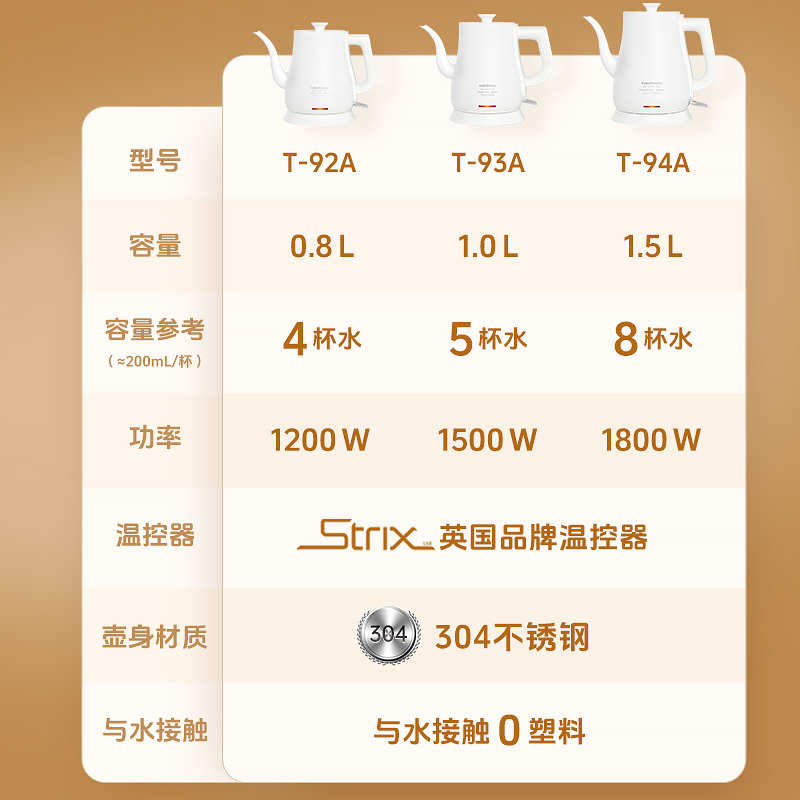 金灶T-93A烧水壶2025新款家用泡茶电热水壶电水壶自动断电电茶壶
