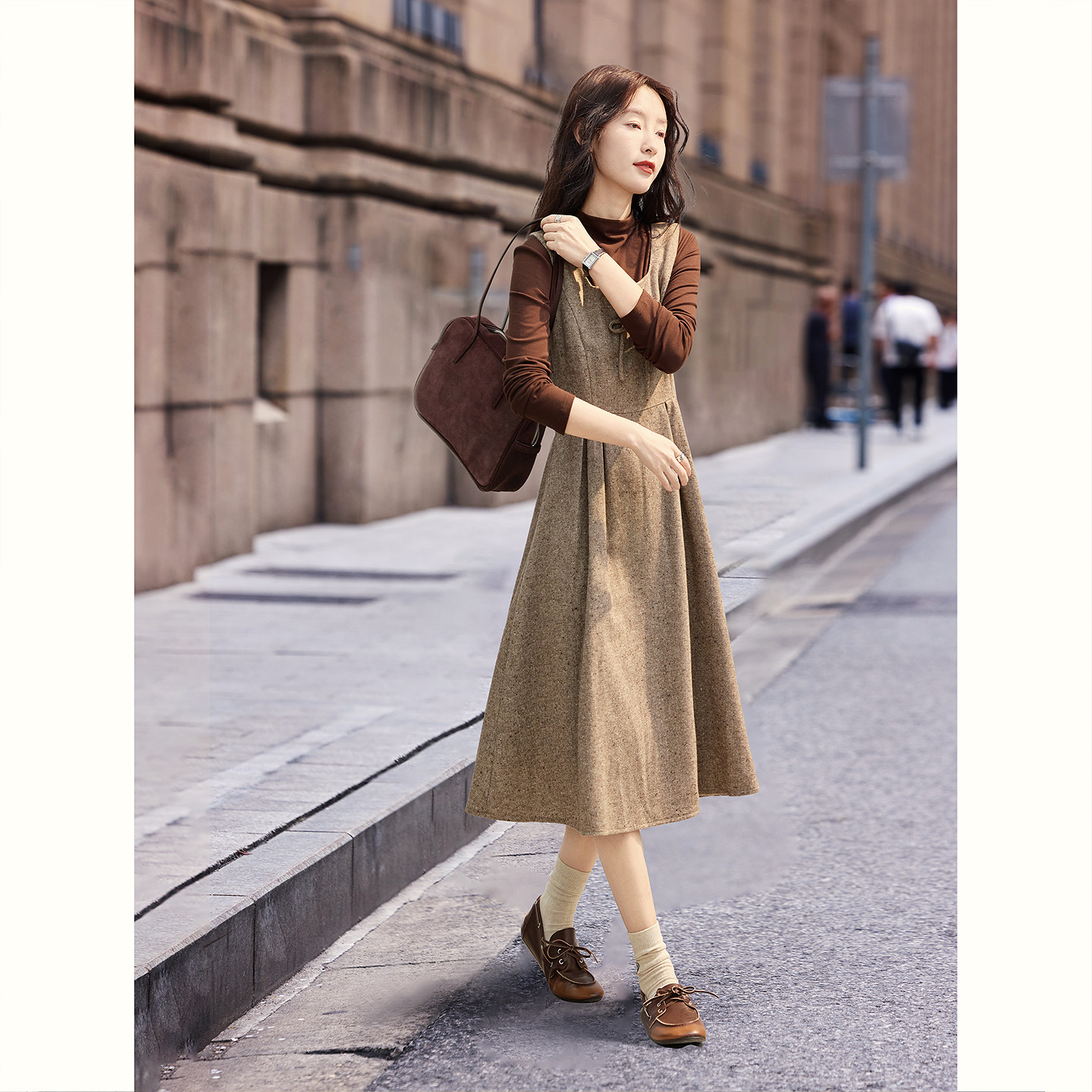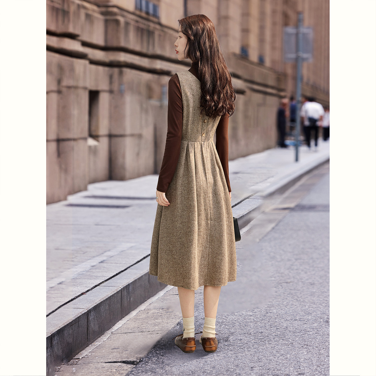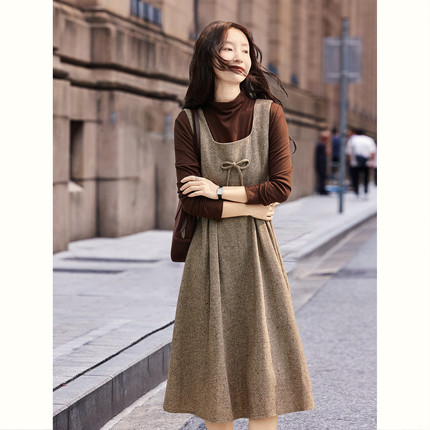 苏醒的乐园蝴蝶结无袖背心含绵羊毛连衣裙2025年新款毛呢冬裙女