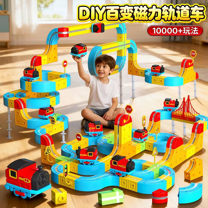 2025新款磁力积木轨道车魔幻百变儿童女男孩益智生日礼物拼装玩具