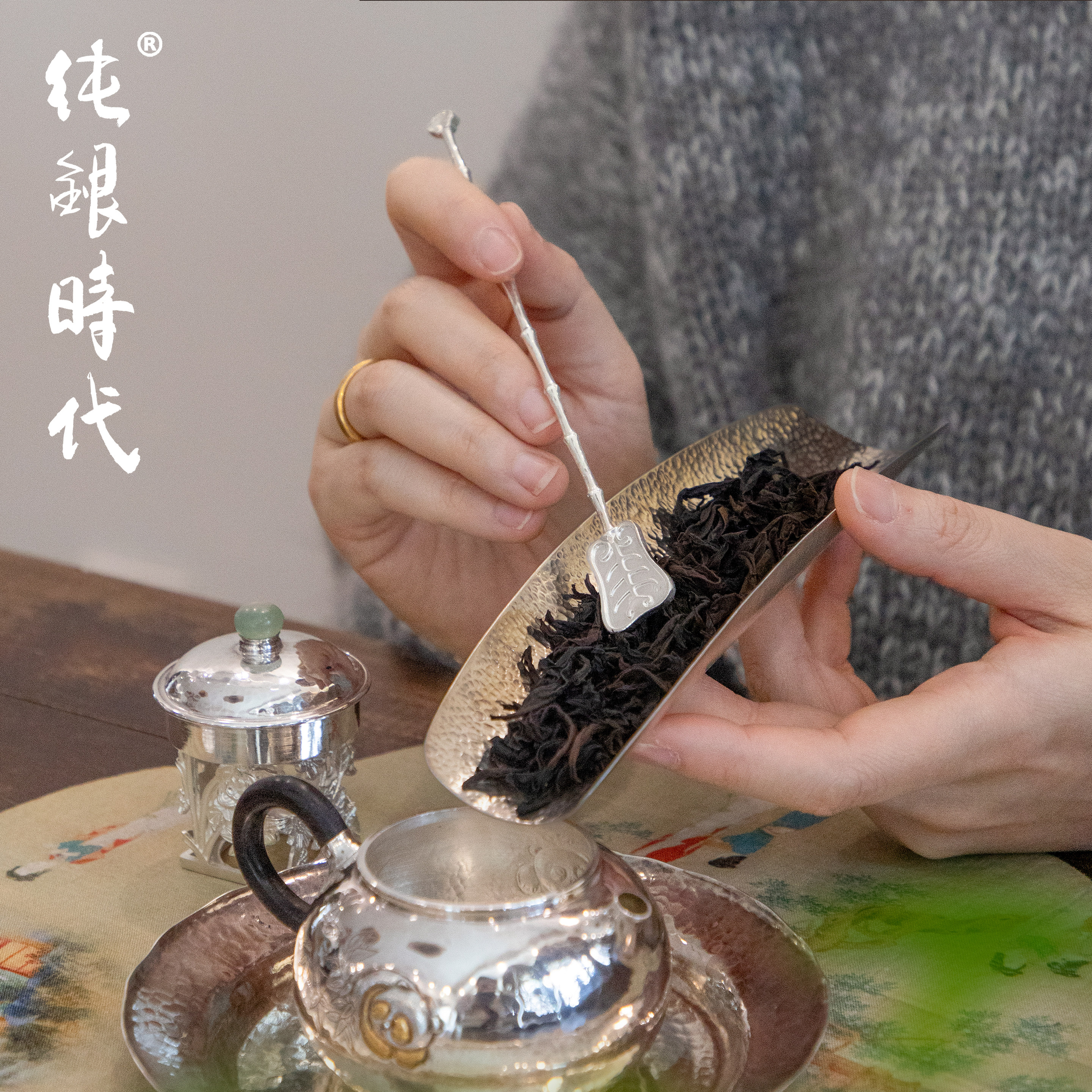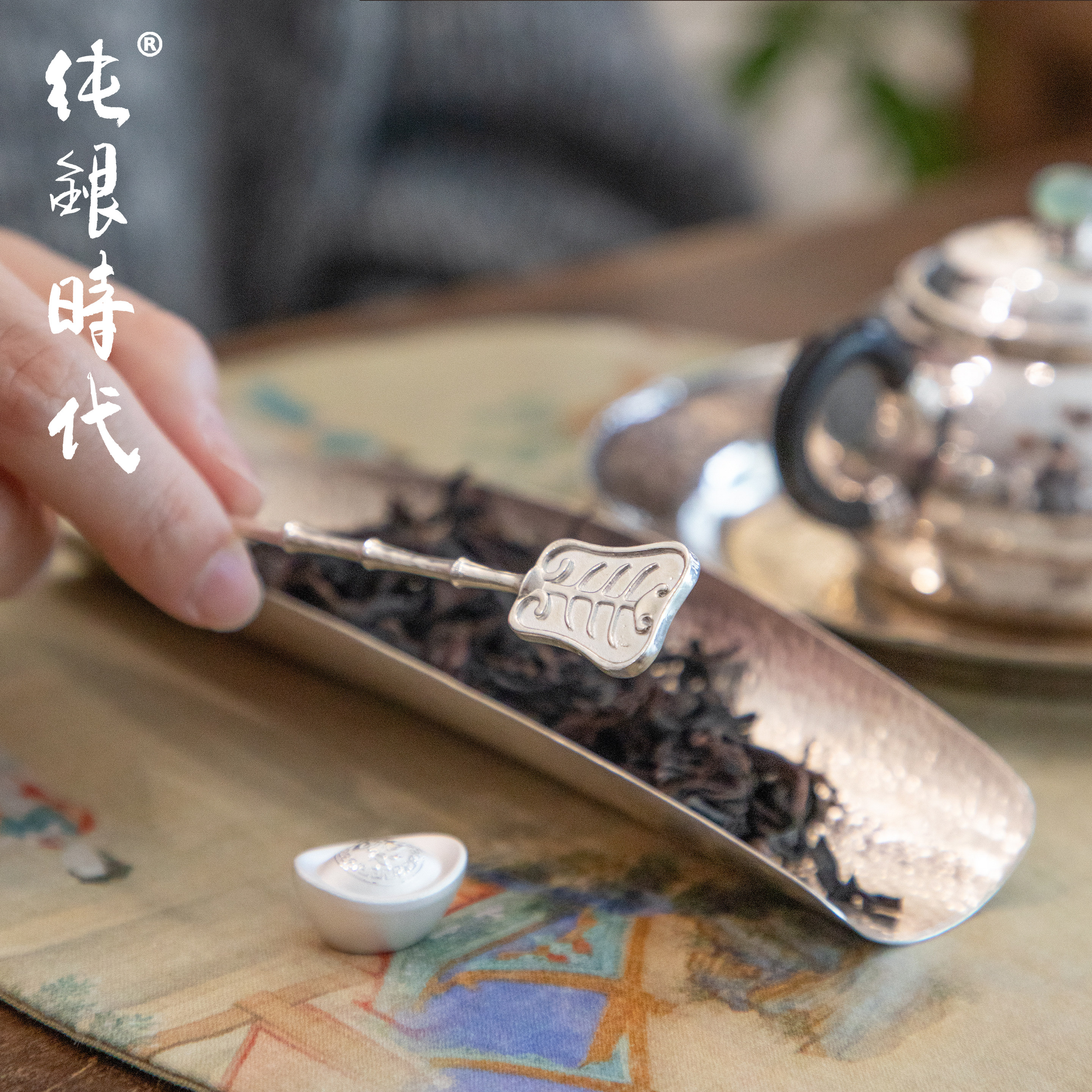 纯银时代 芭蕉茶拨茶则纯银999茶匙手工竹节功夫茶具中式茶道配件