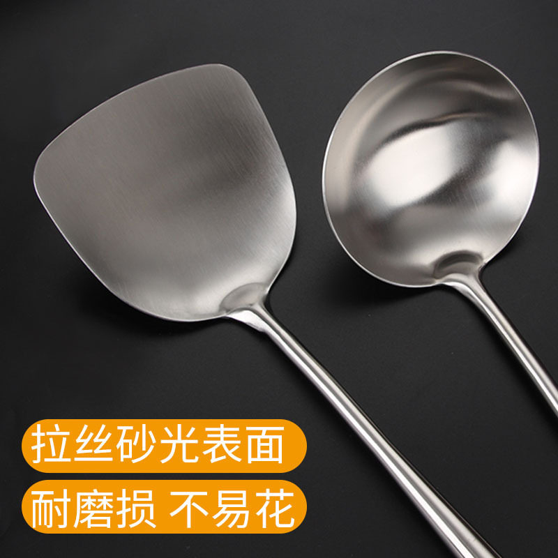 铁人304不锈钢炒勺铁锅炒铲家用炒菜锅铲子长木柄厨师专用铁锅铲