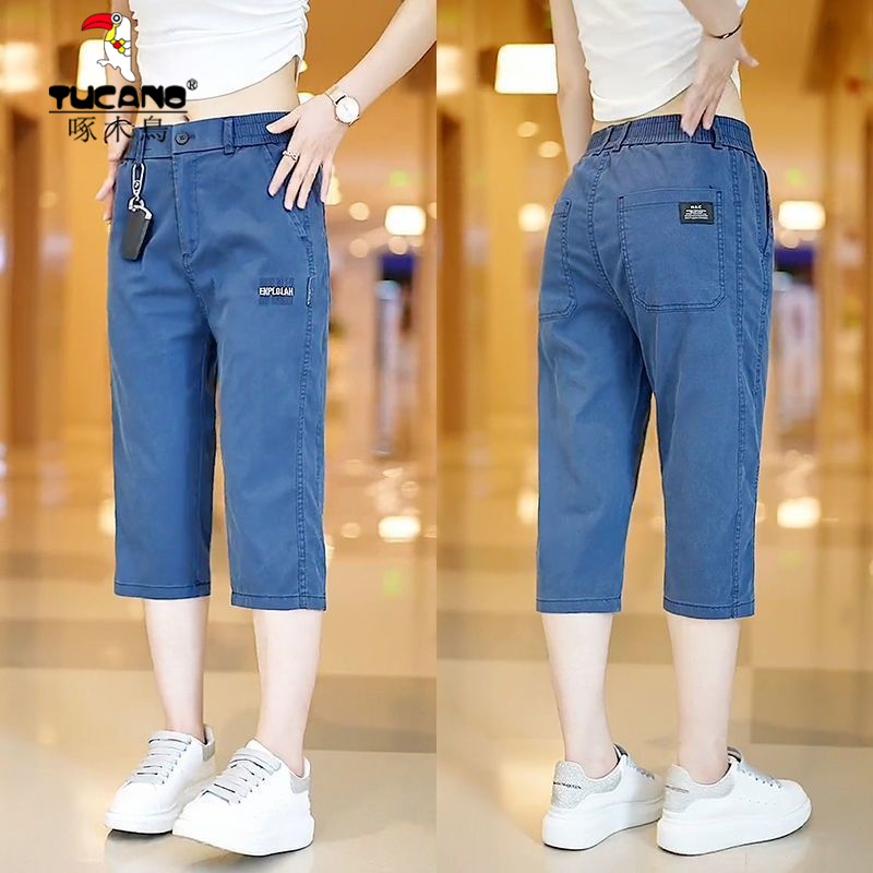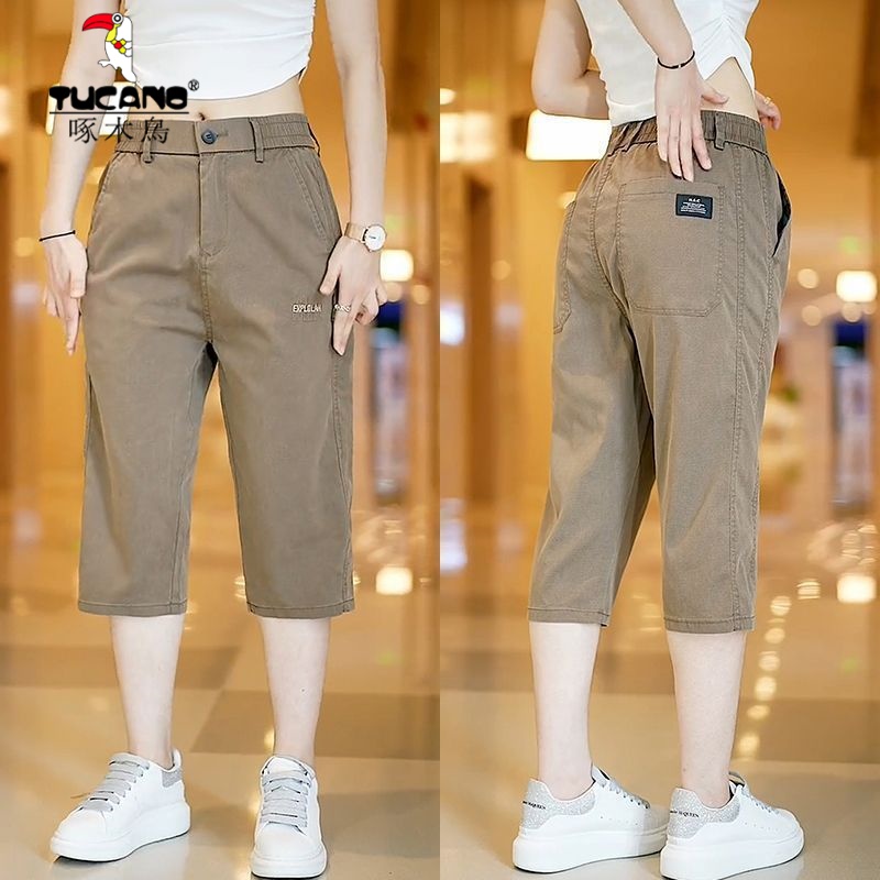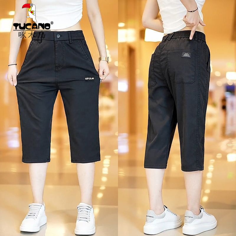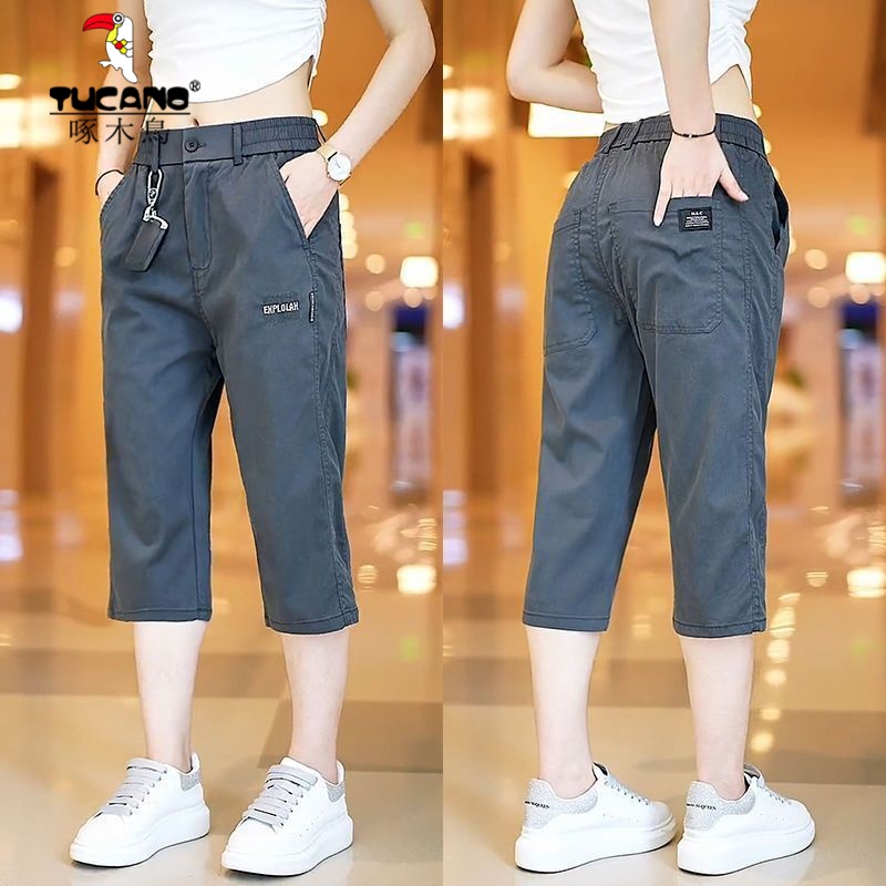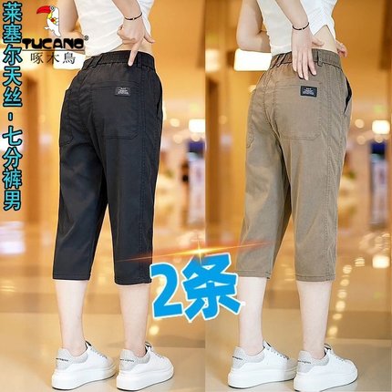 啄木鸟七分裤冰丝高端2025新款休闲短裤男夏季薄款修身直筒中裤子