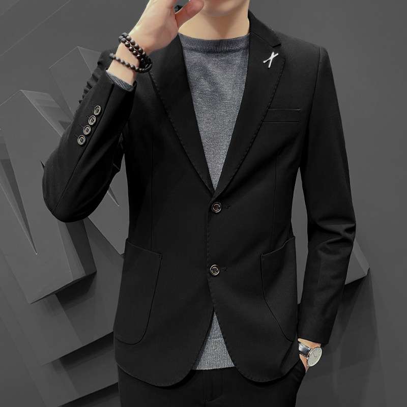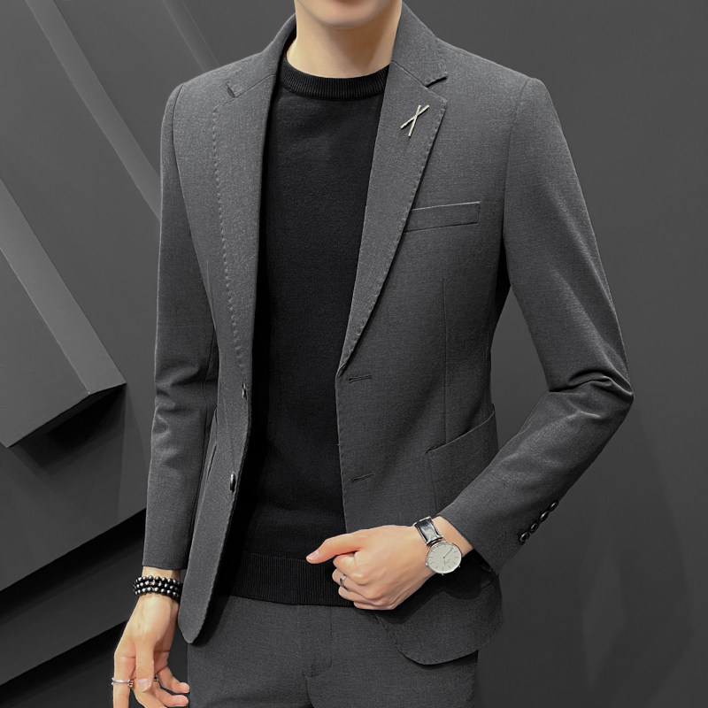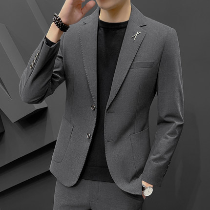 男士休闲修身小西装套装大学生西装男外套灰色商务春秋季西服上衣