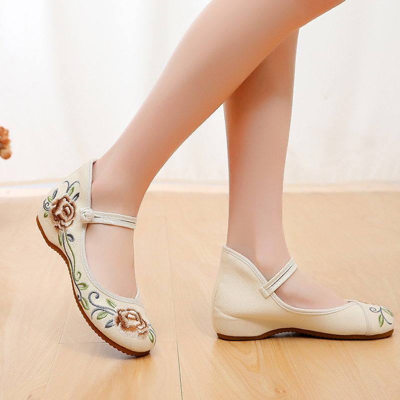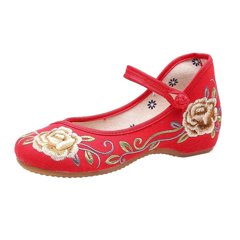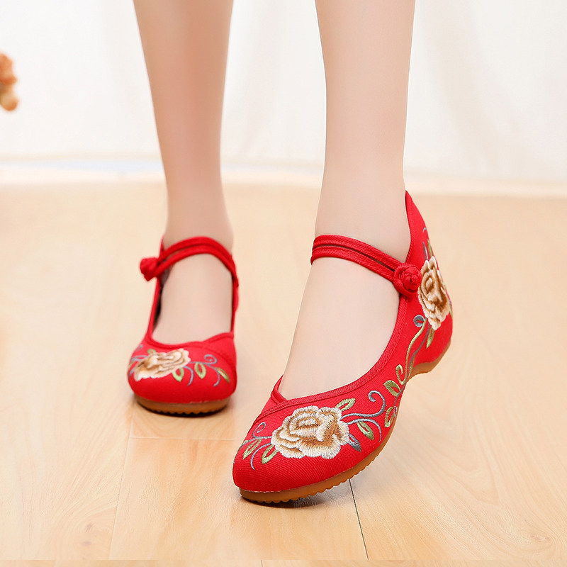广场舞鞋女新款绣花老北京布鞋软底舞蹈鞋古民族风秧歌红色跳舞鞋