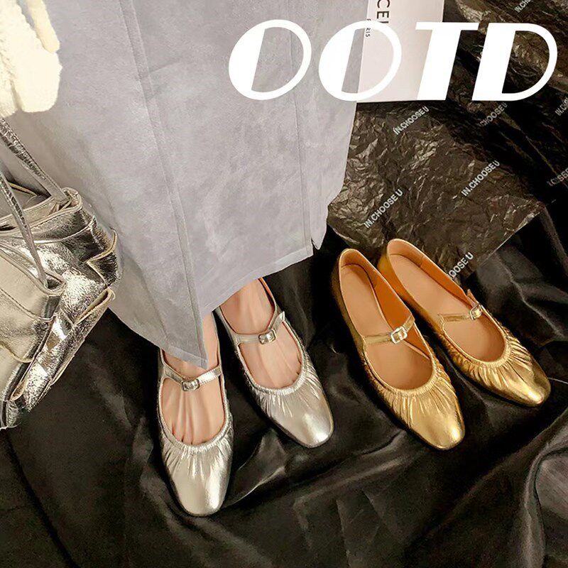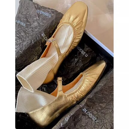 真皮法式晚风温柔配裙子软皮软底飘鞋金色平底新中式玛丽珍单鞋女
