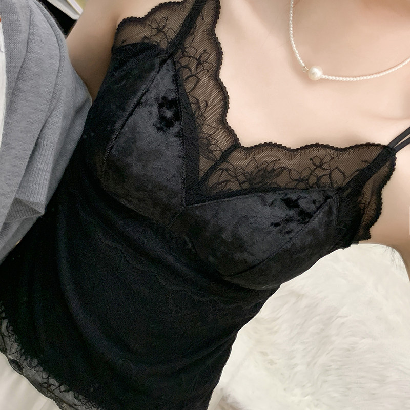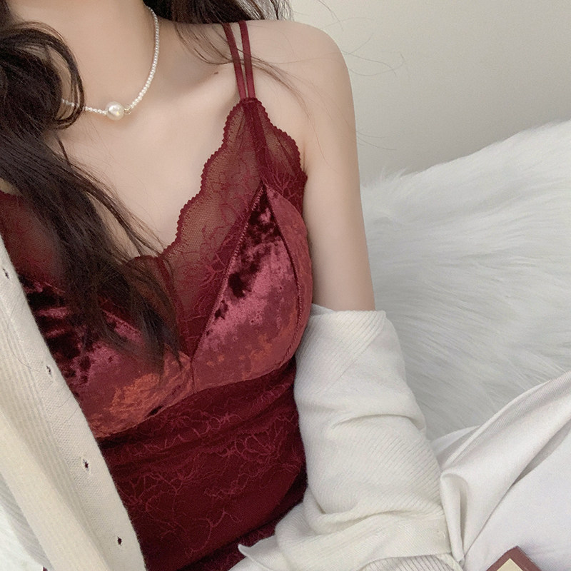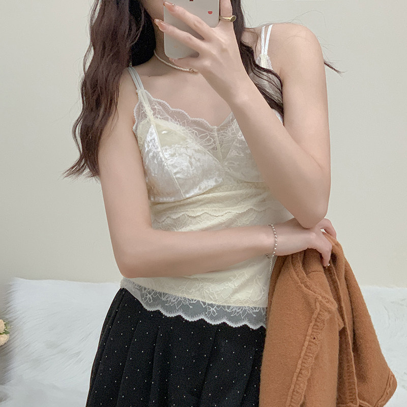 2025新款美背内搭上衣自带胸垫白色蕾丝吊带文胸一体磨毛背心女