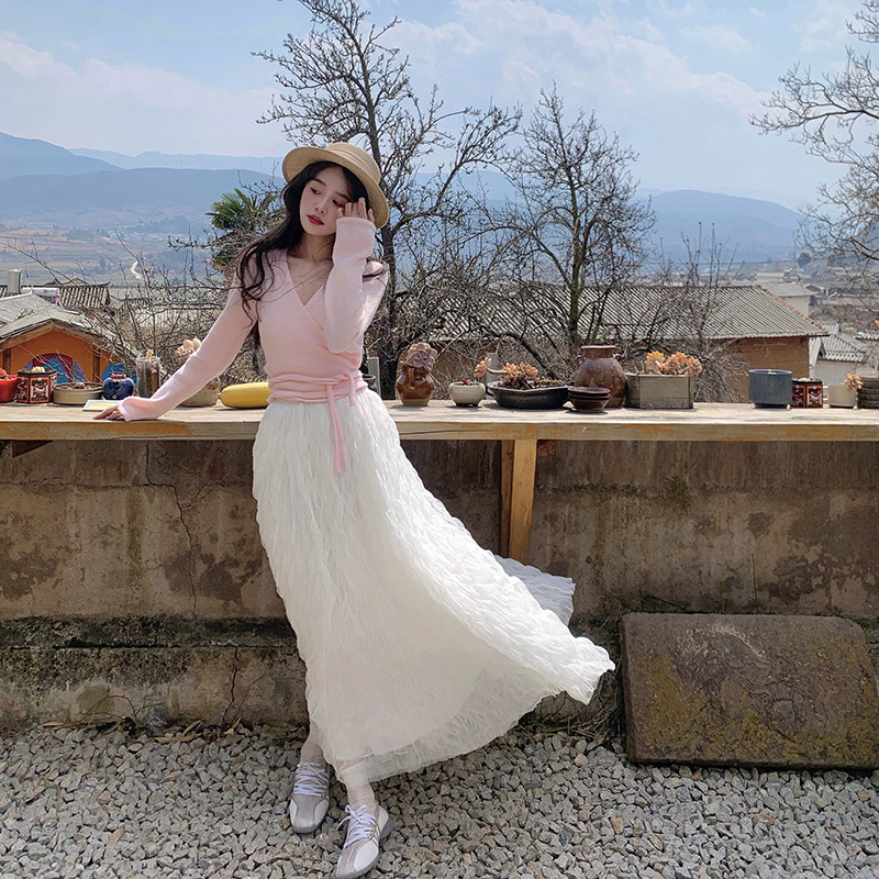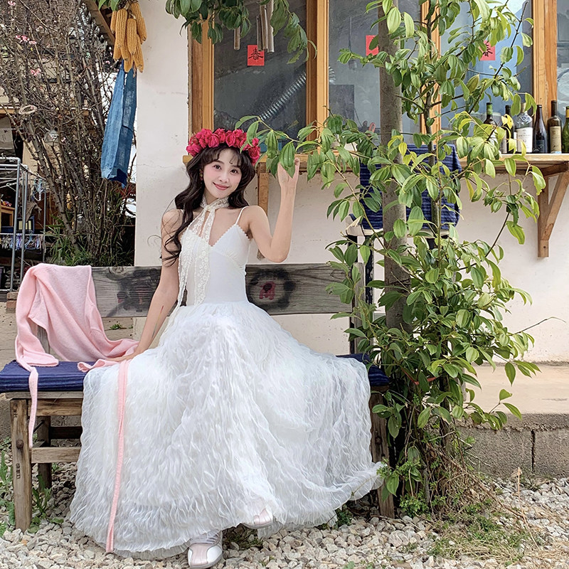 赵幺妹 月光圆舞曲 私服系列白色吊带蕾丝拼接连衣裙薄纱裙长裙女
