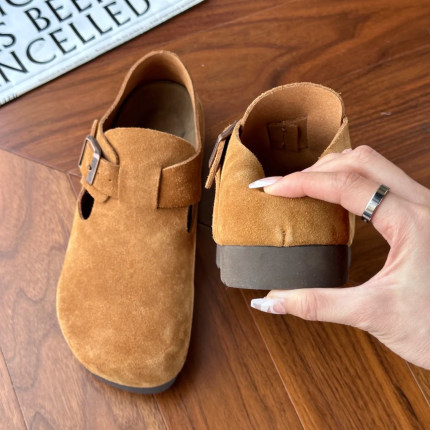 摩大叔全真皮钓鱼勃肯鞋女休闲博肯单鞋全包一脚蹬平底鞋小皮鞋男