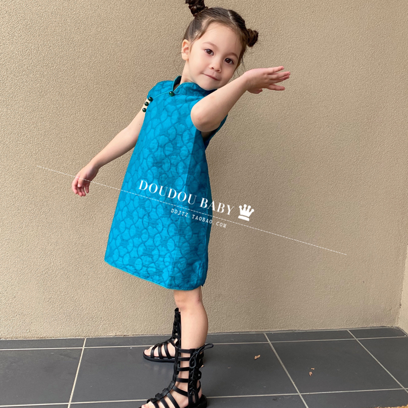 豆豆家女童旗袍夏2025春夏新款网红儿童装连衣裙中国风女宝短袖裙