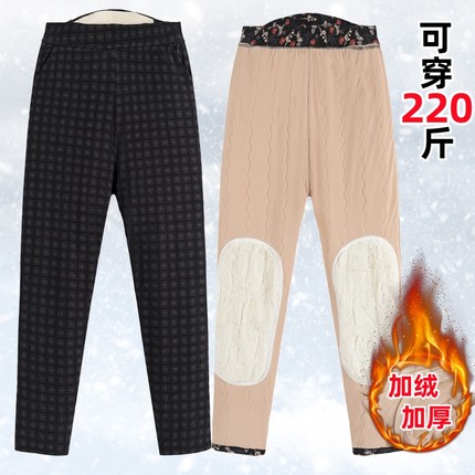 加肥加大码女外穿妈妈加绒加厚中老年冬季奶奶高腰保暖老人棉裤子