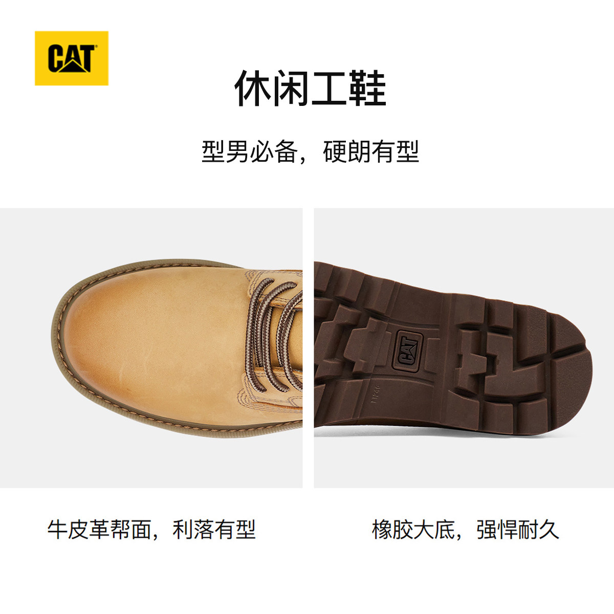 CAT卡特26春季新品男士时尚通勤皮鞋德比鞋中帮工装黄靴商场同款