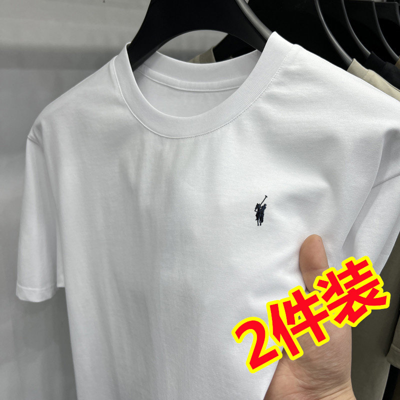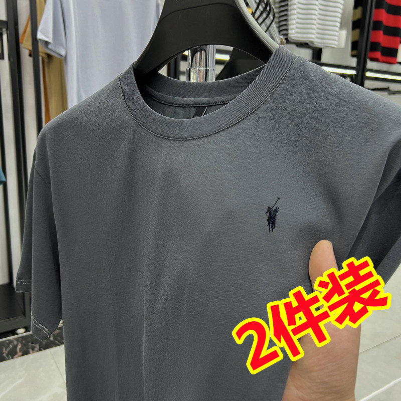 保罗100%纯棉短袖t恤男士新款阔版加肥加大半袖体恤衫圆领上衣服