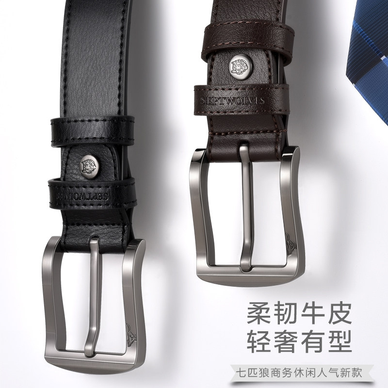 七匹狼皮带男款真皮针扣男士腰带2026新款纯正品牛皮潮年轻人裤带