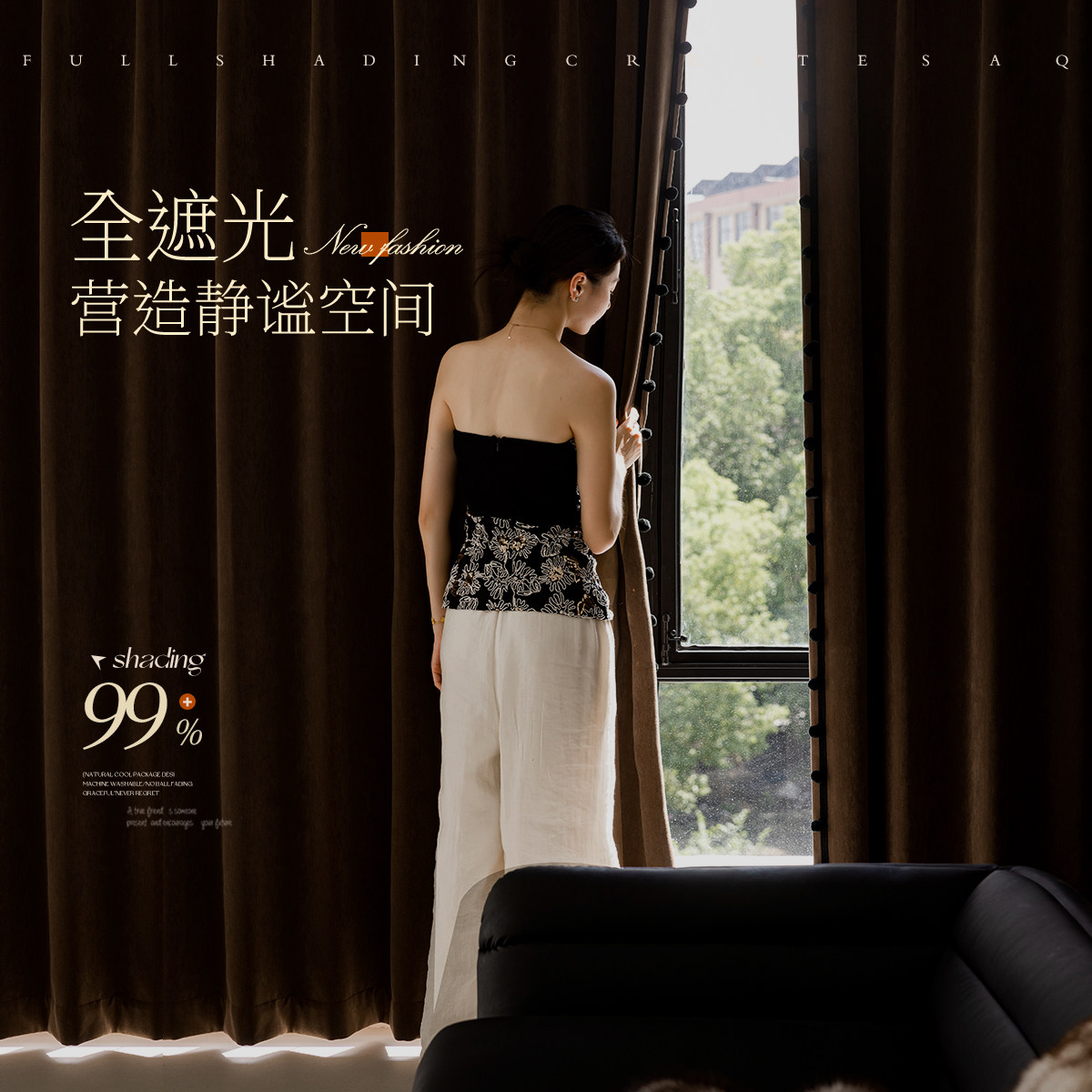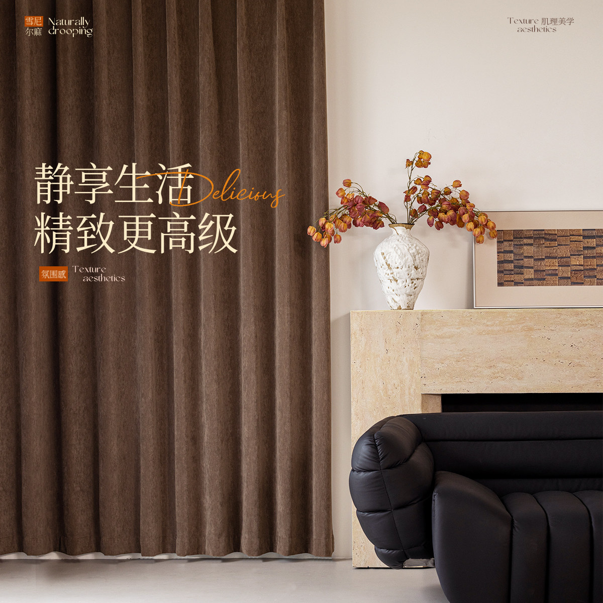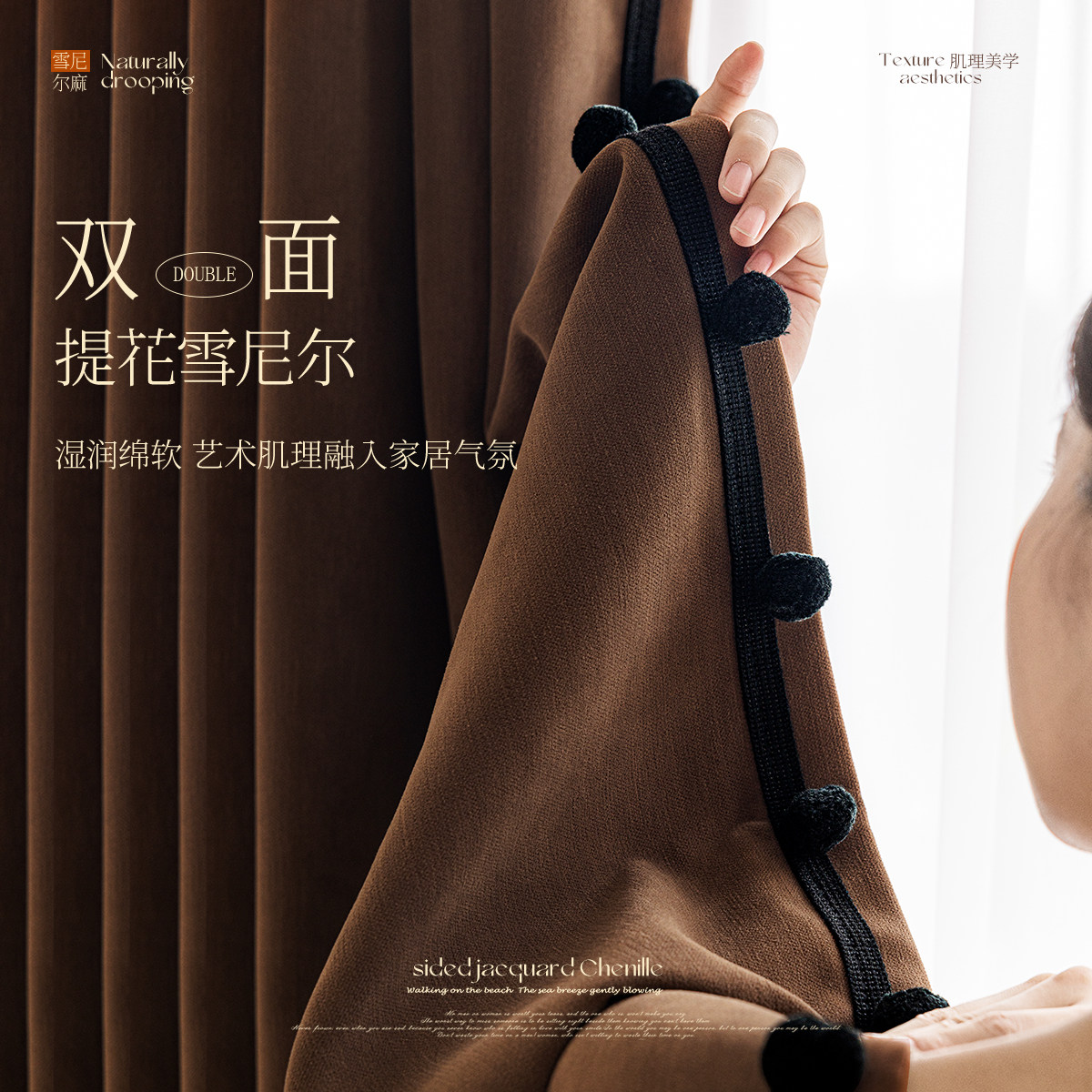 美拉德棕雪尼尔麻窗帘遮光2025新款卧室绍兴柯桥工厂客厅全屋定制