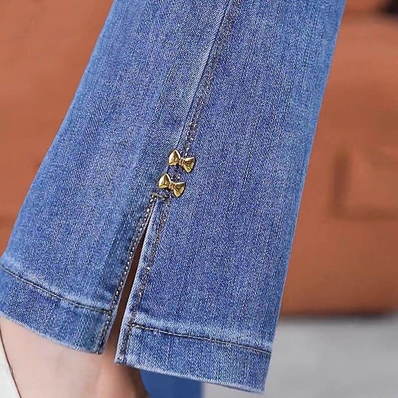 微喇牛仔裤女春秋2025新款烫钻高腰弹力显瘦马蹄裤直筒开叉喇叭裤