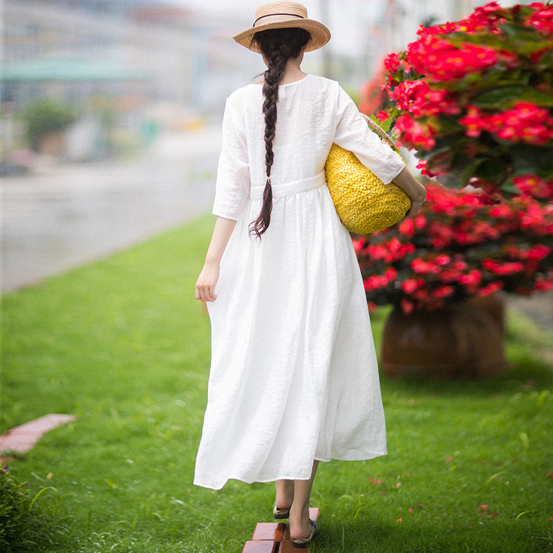 【5折】天丝提花白色连衣裙新款夏 v领白裙子开衫文艺长裙夏天女