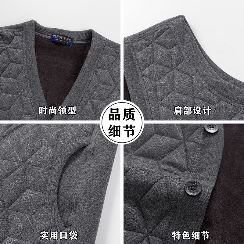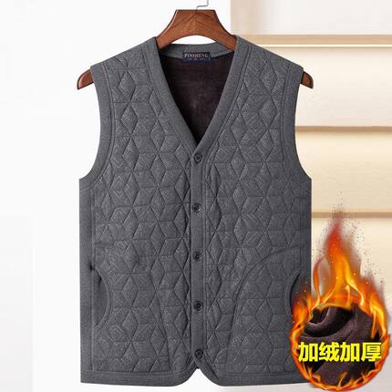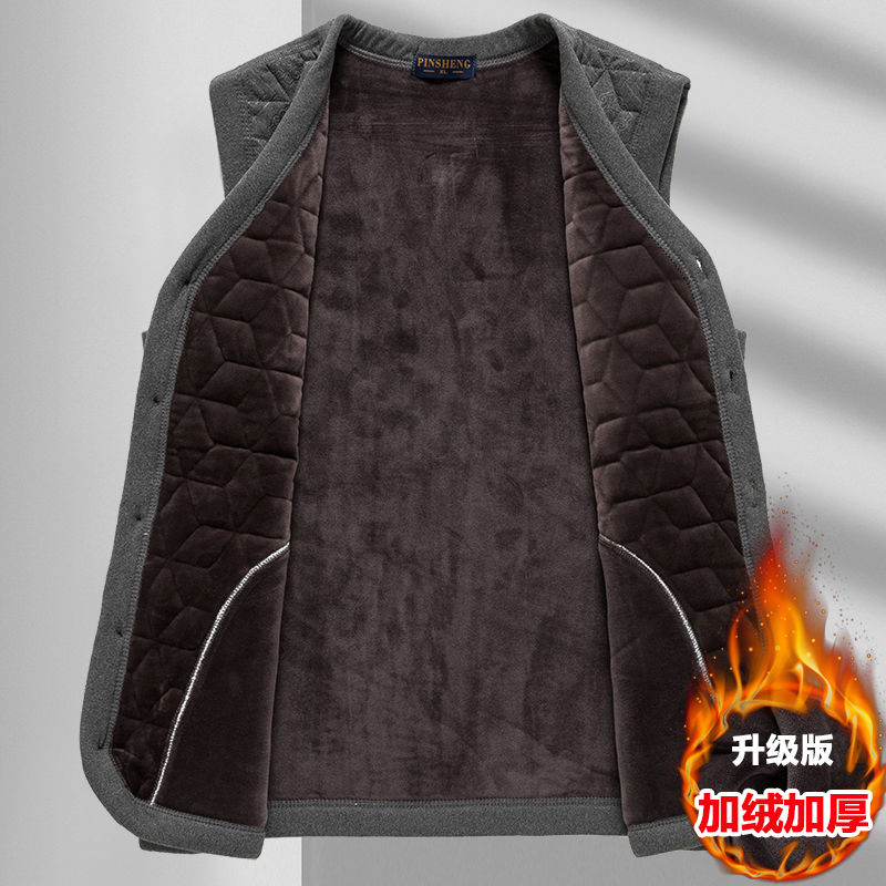 中年男装加绒加厚马甲背心中老年人冬装加绒坎肩爸爸装保暖外套