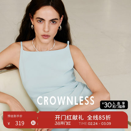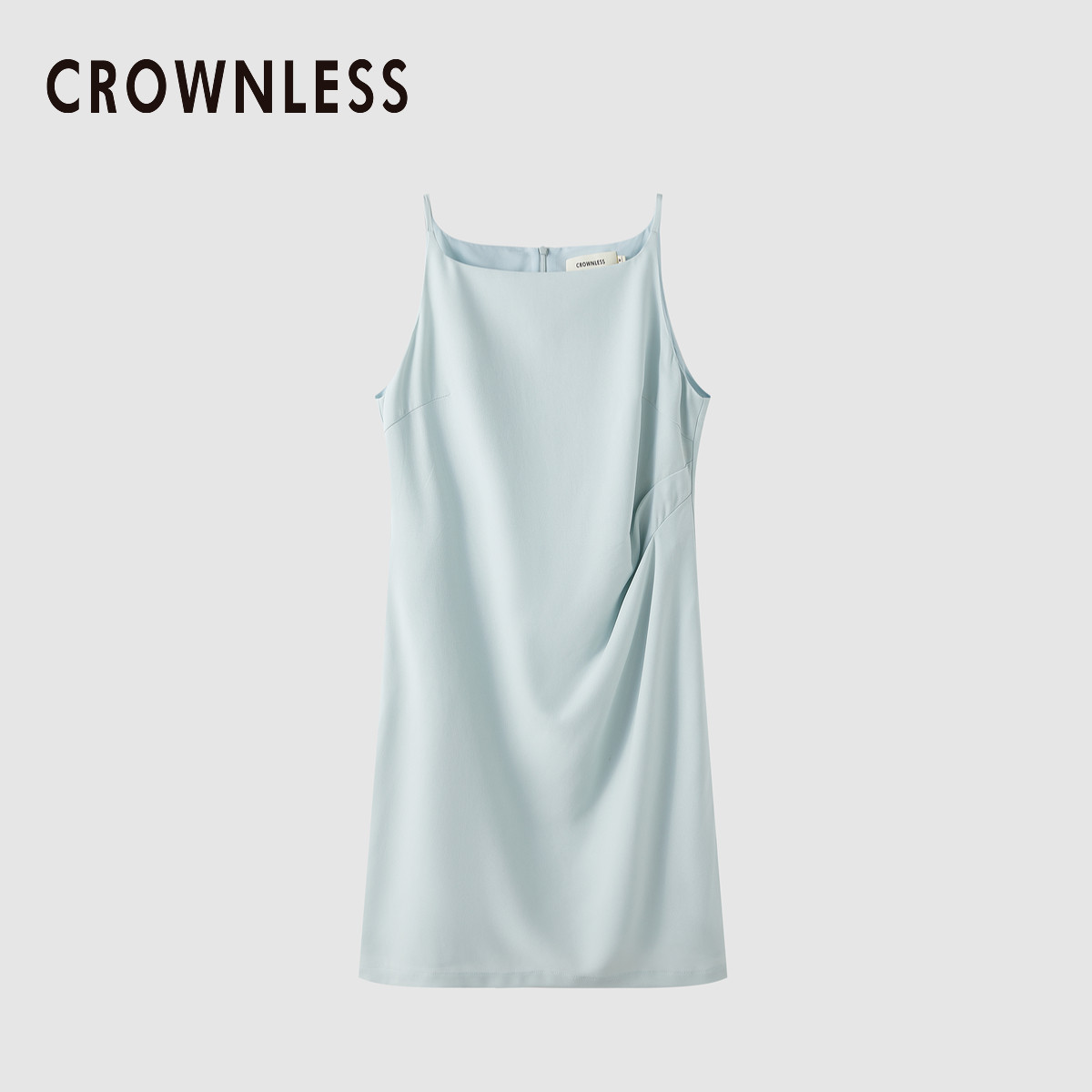 CROWNLESS未冕一字领收腰气质高级感显瘦法式吊带修身连衣裙