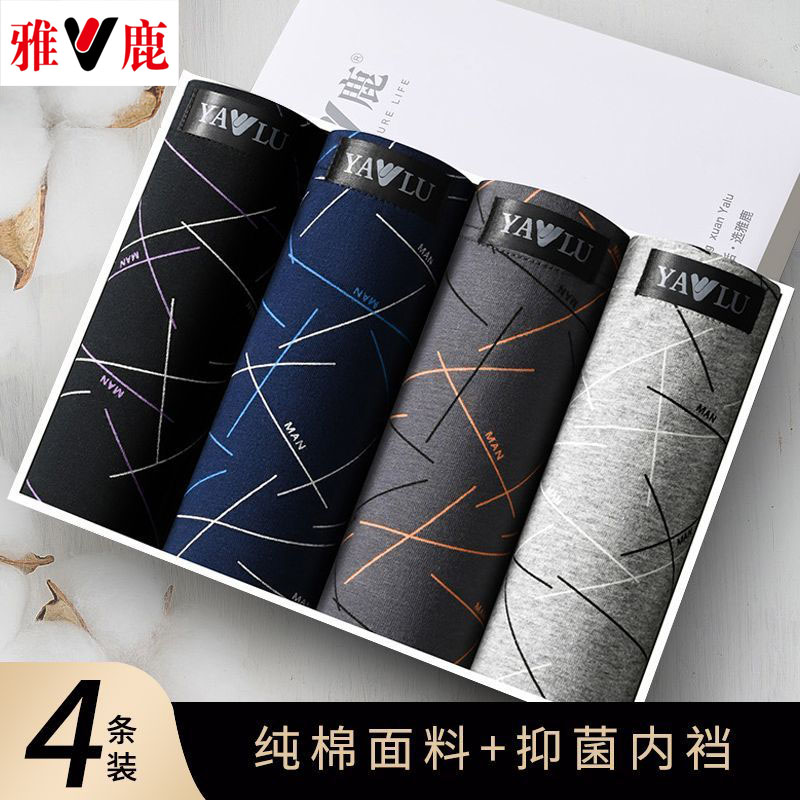 雅鹿男士内裤男平角裤纯棉透气男款短裤青年裤衩中腰内裤男潮裤头