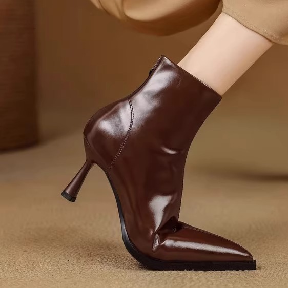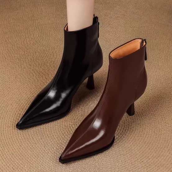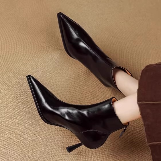 巨好看~显瘦欧美个性尖头细跟短靴女真皮瘦瘦靴时装靴高跟鞋单靴