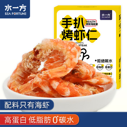 水一方手扒烤虾仁盒装即食0糖烤虾干大连特产低脂海味干货钙零食