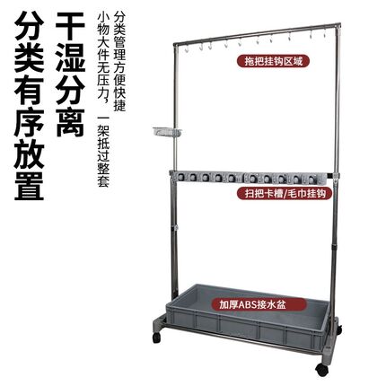 可移动不锈钢落地式挂钩拖把架扫把墩布教室清洁工具收纳置物架子