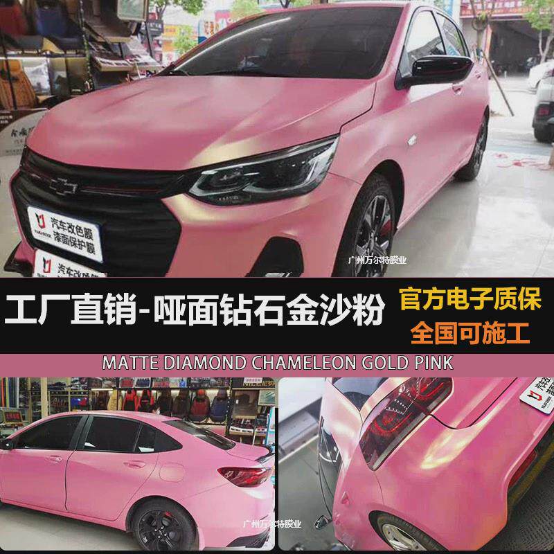 工厂直销哑d面钻石金沙粉色汽车改色膜电动全车膜车身改色贴膜施