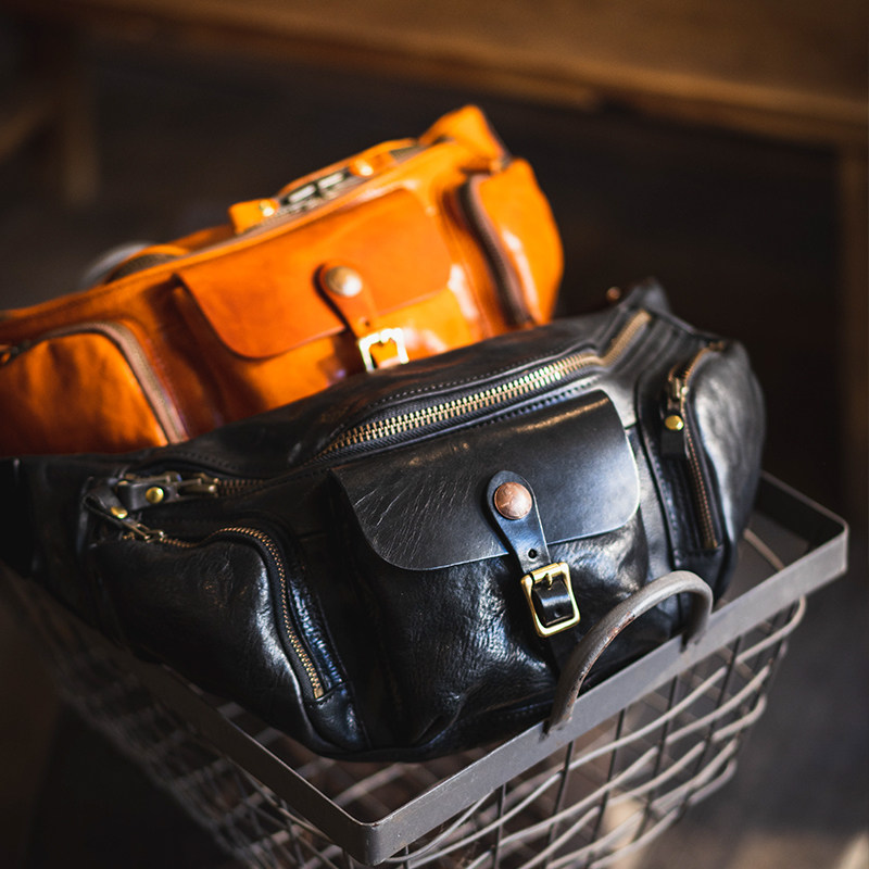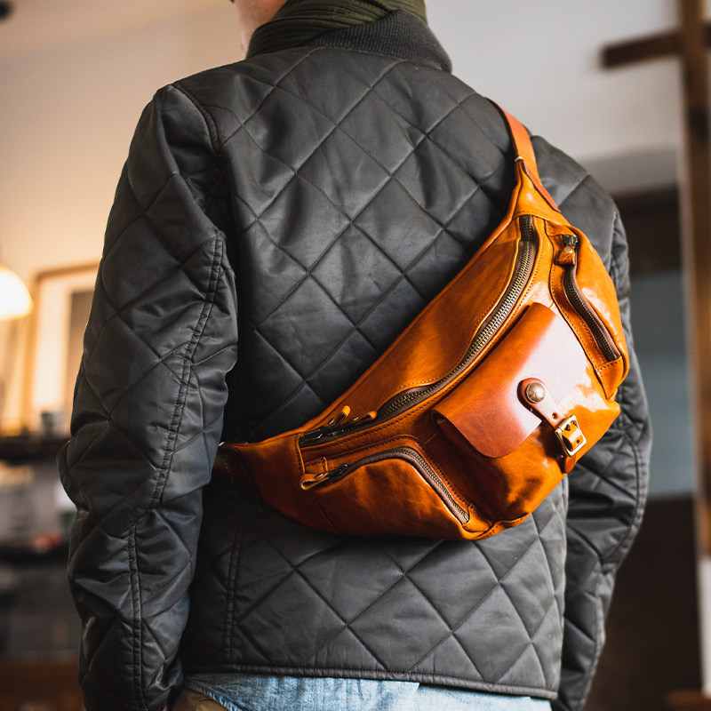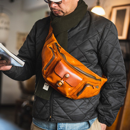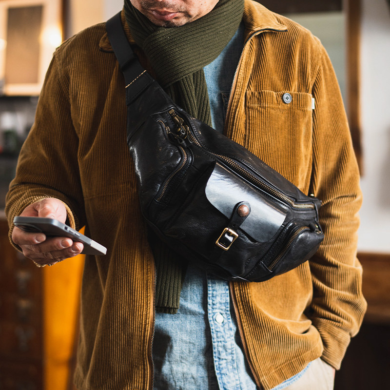 牛爷 手作全皮胸包复古经典机车阿美咔叽单肩包斜挎包腰包