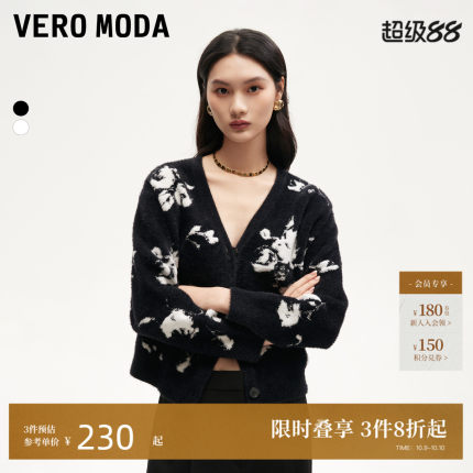 Vero Moda针织衫女2024秋季新款V领宽松落肩袖显瘦毛衣外套开衫