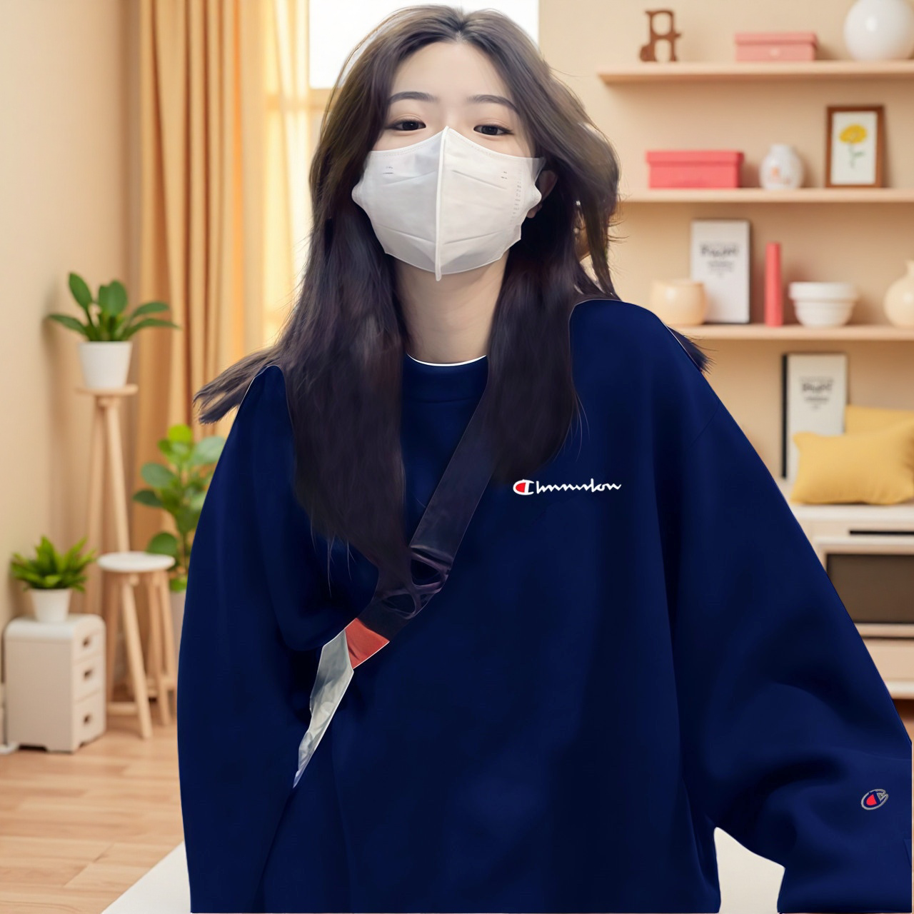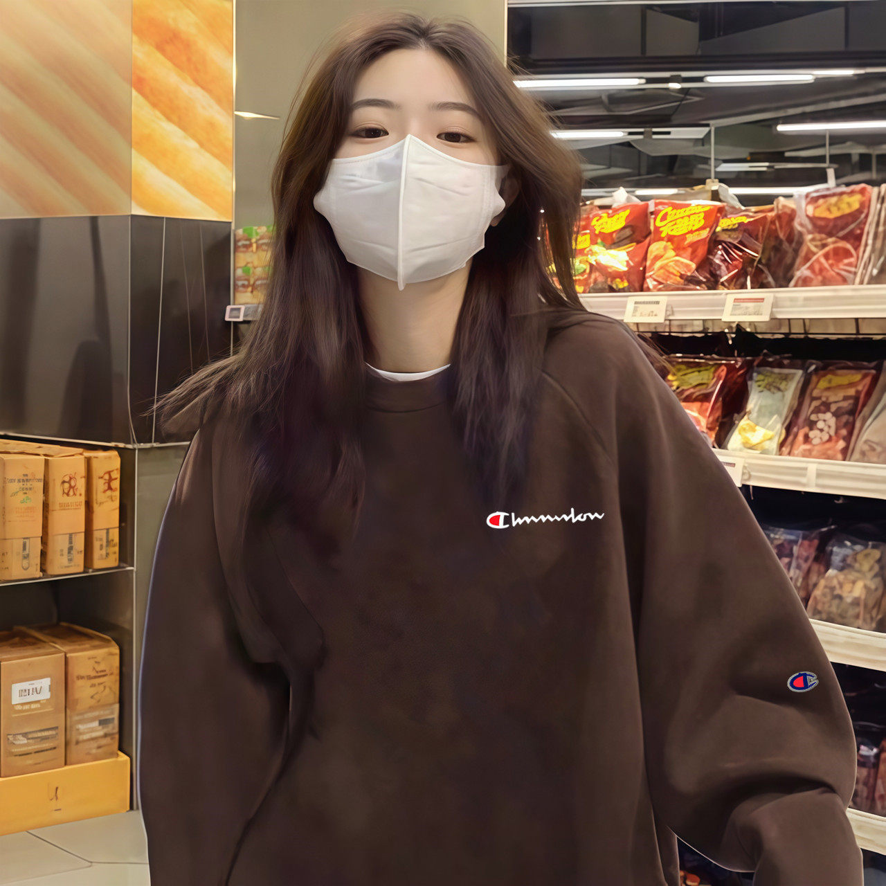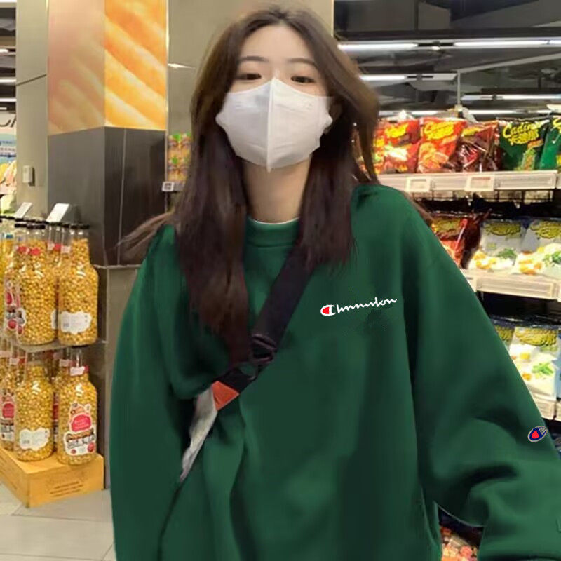 冠军刺绣圆领卫衣女冬美式重磅宽松加绒打底休闲新年红情侣外套男