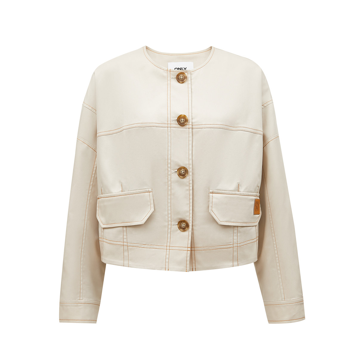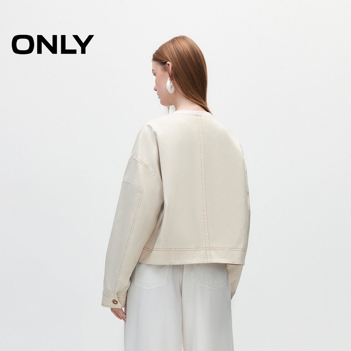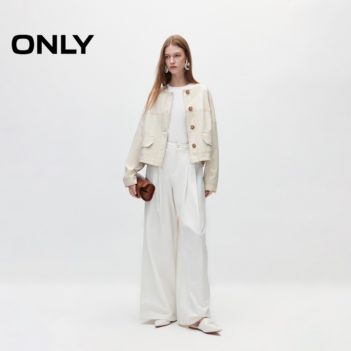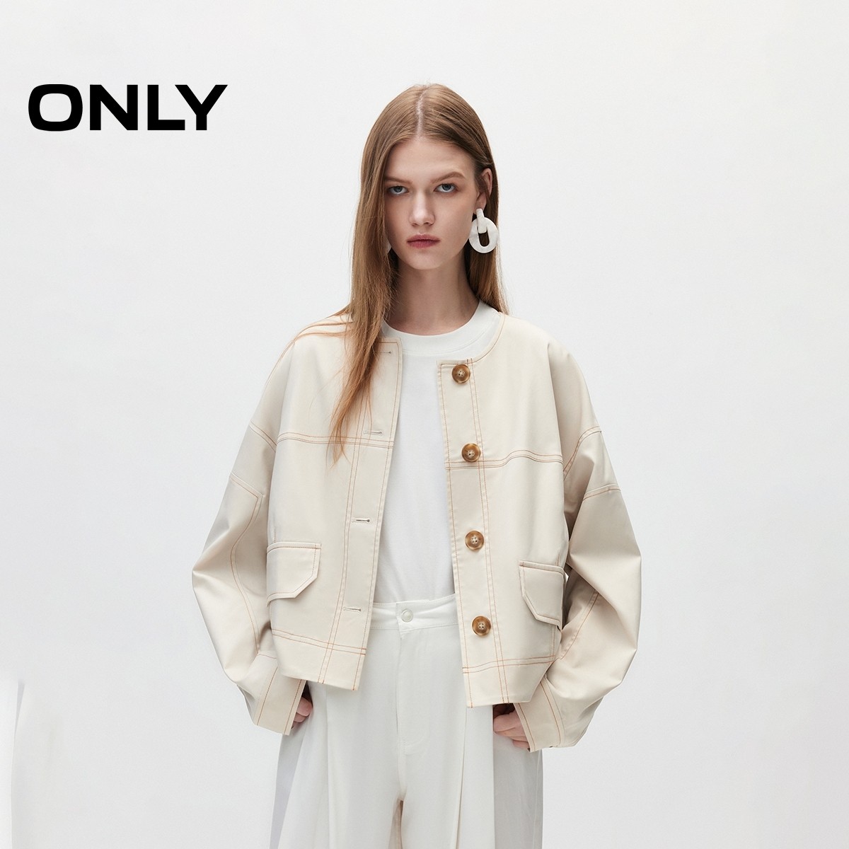 绫致ONLY秋冬新简约通勤宽松潮流休闲圆领风衣外套女士