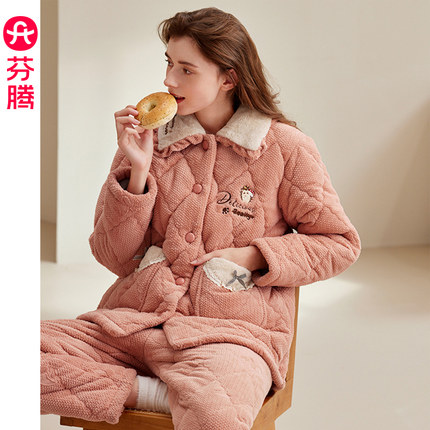 芬腾女加厚三层珊瑚绒夹棉睡衣