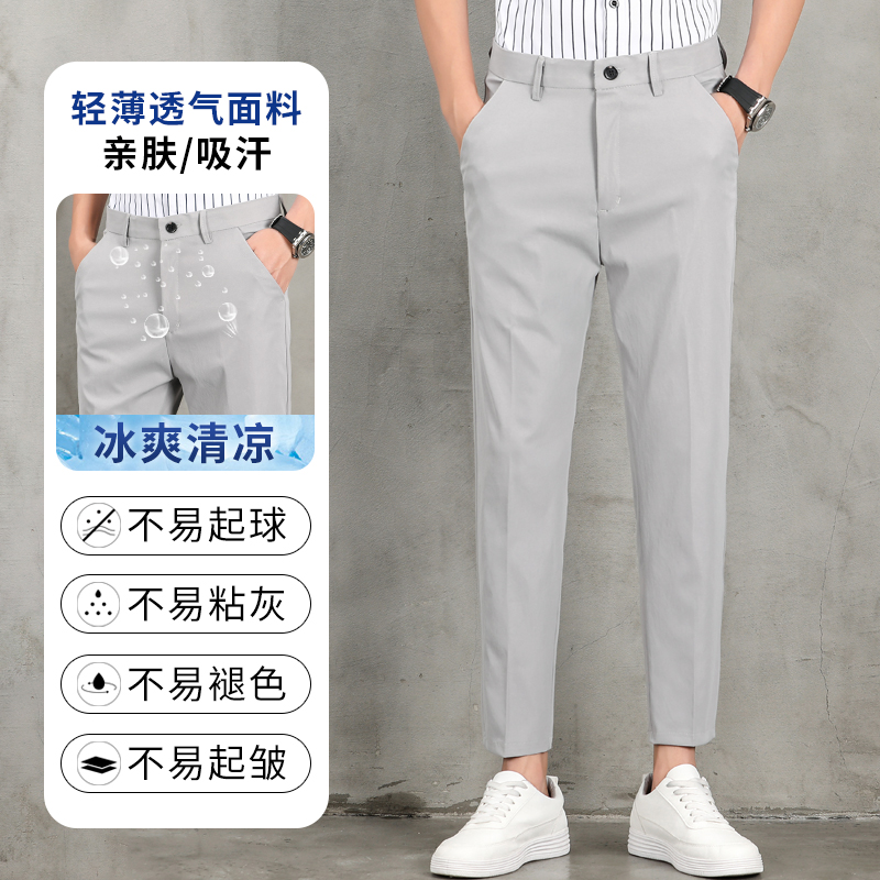 罗蒙冰丝休闲裤子男士潮牌修身西裤2025新款夏季薄款百搭直筒长裤