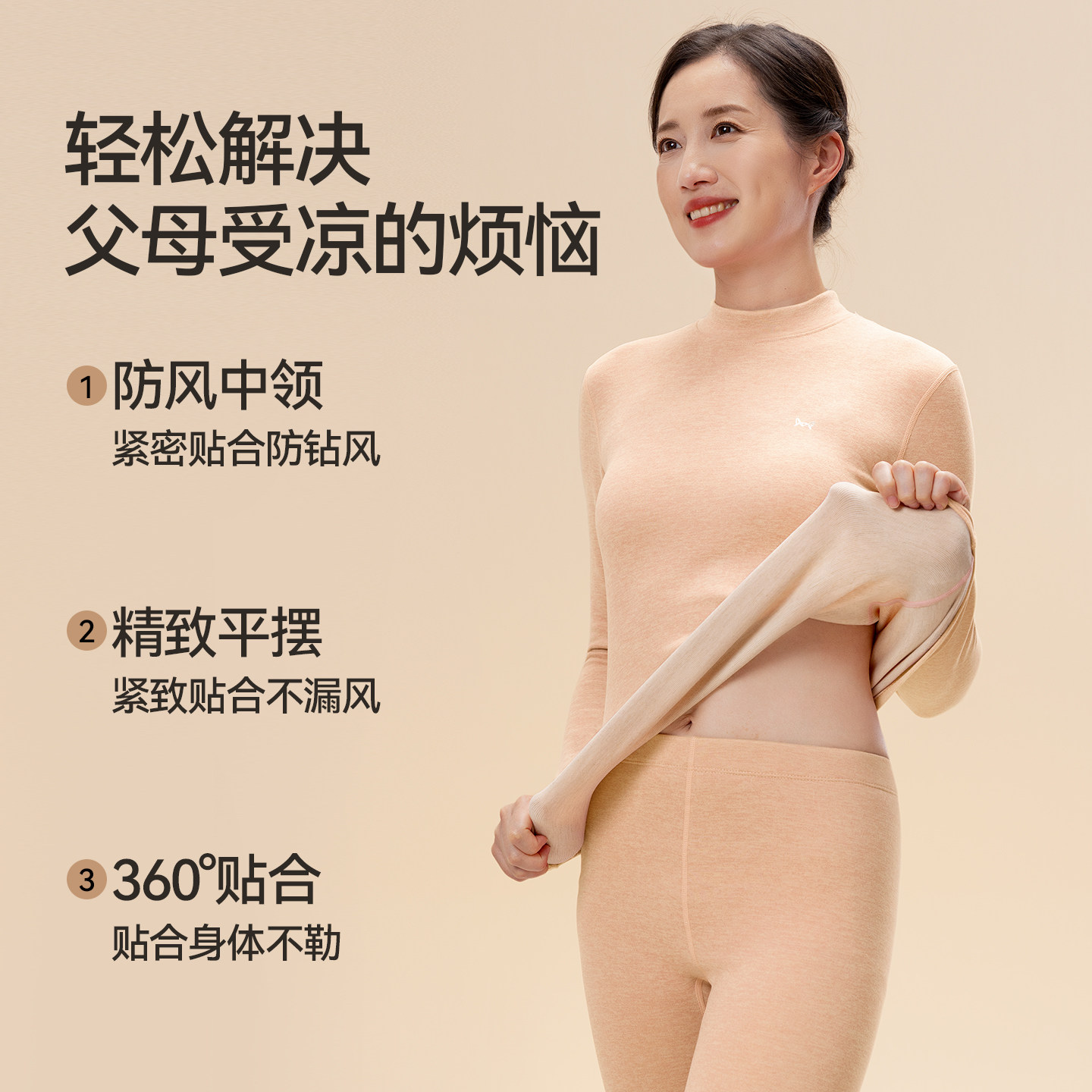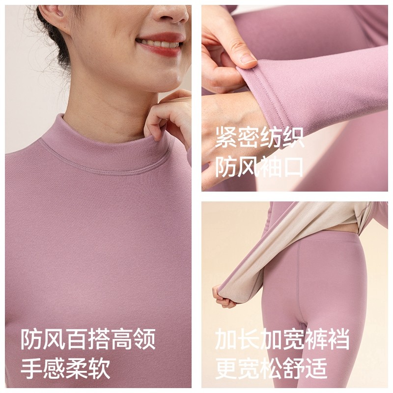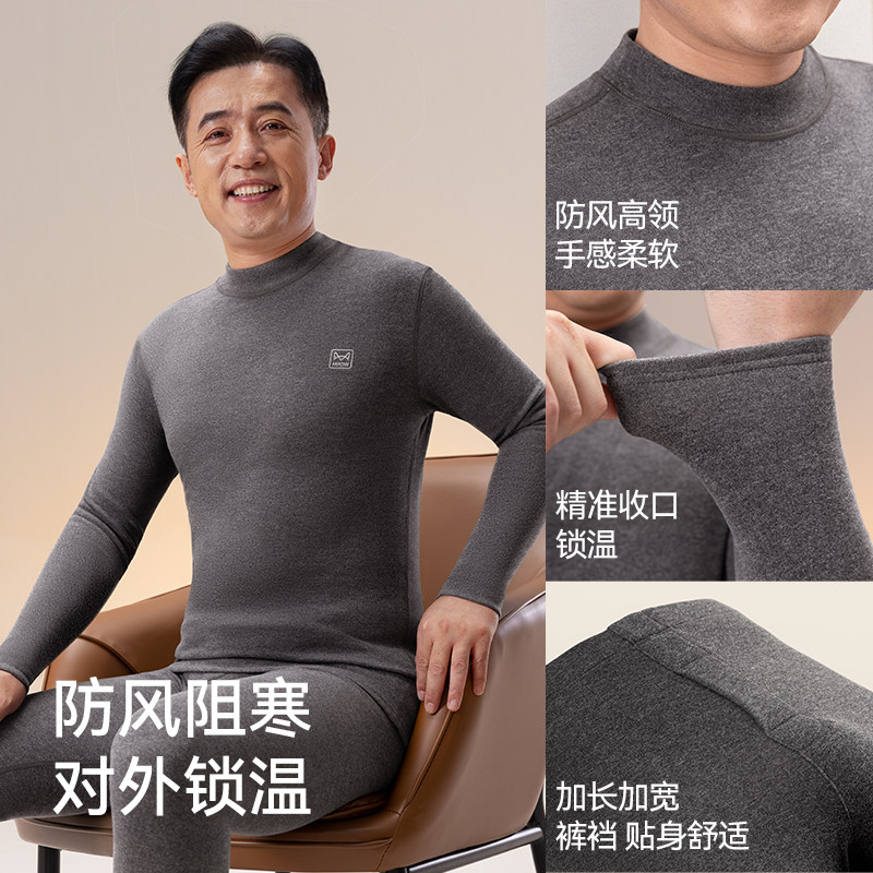 猫人中老年保暖内衣加绒加厚中高领男女款大码秋衣秋裤套装送父母