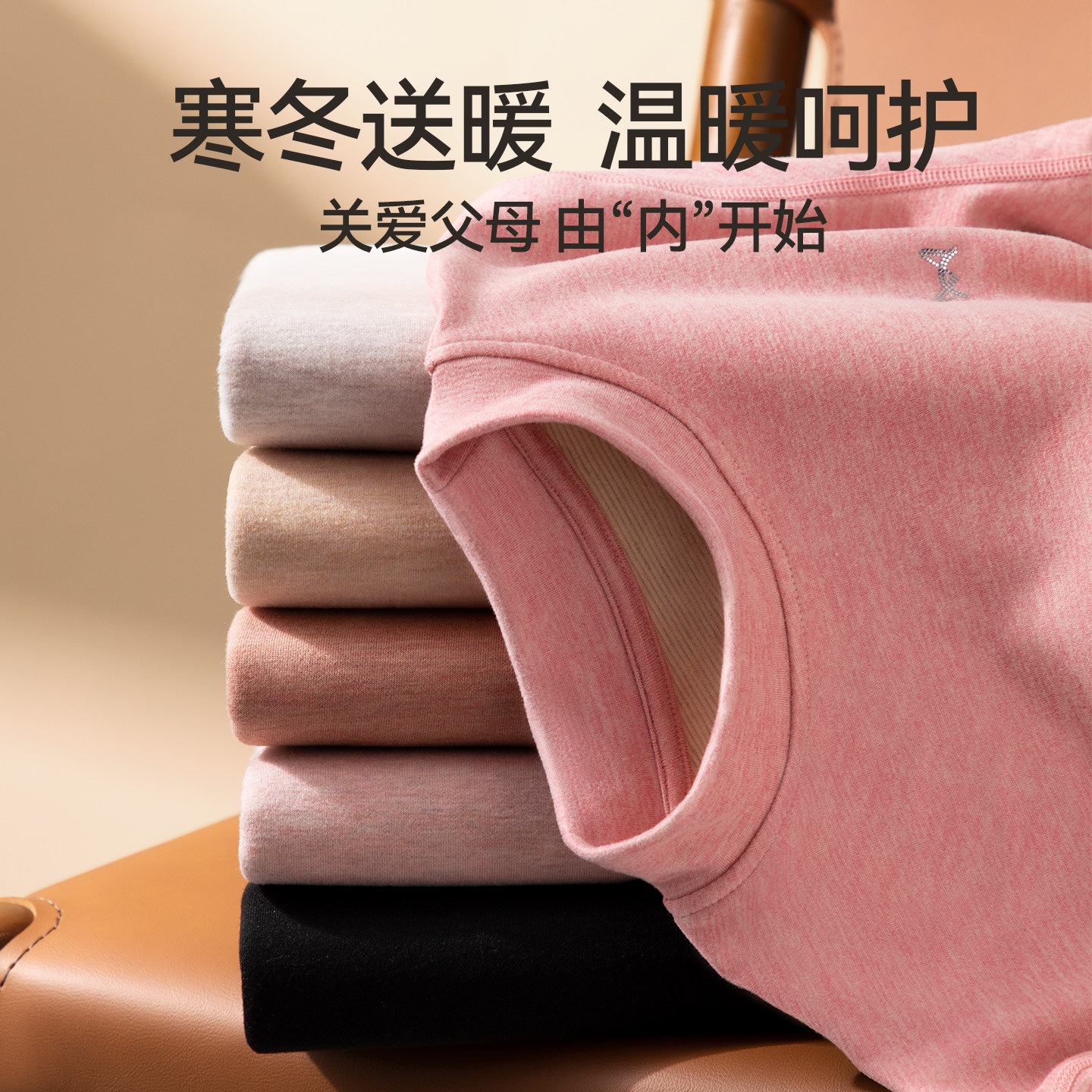 猫人中老年宽松中领防风保暖内衣
