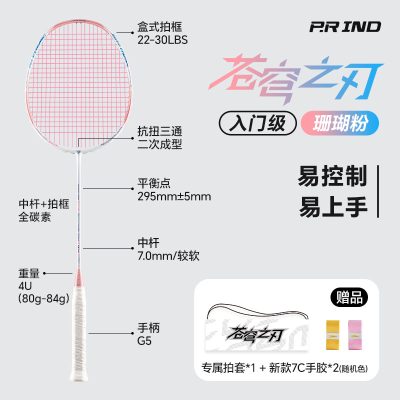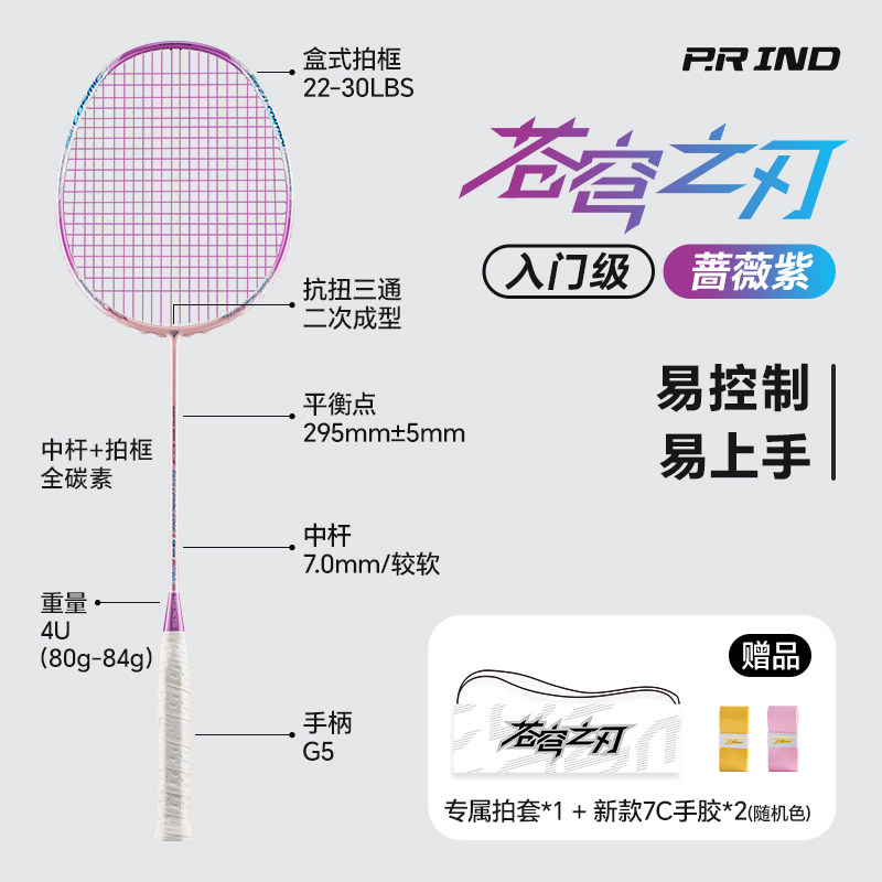 浦锐正品苍穹之刃初学者羽毛球拍全碳纤维4U超轻耐打专业训练单拍