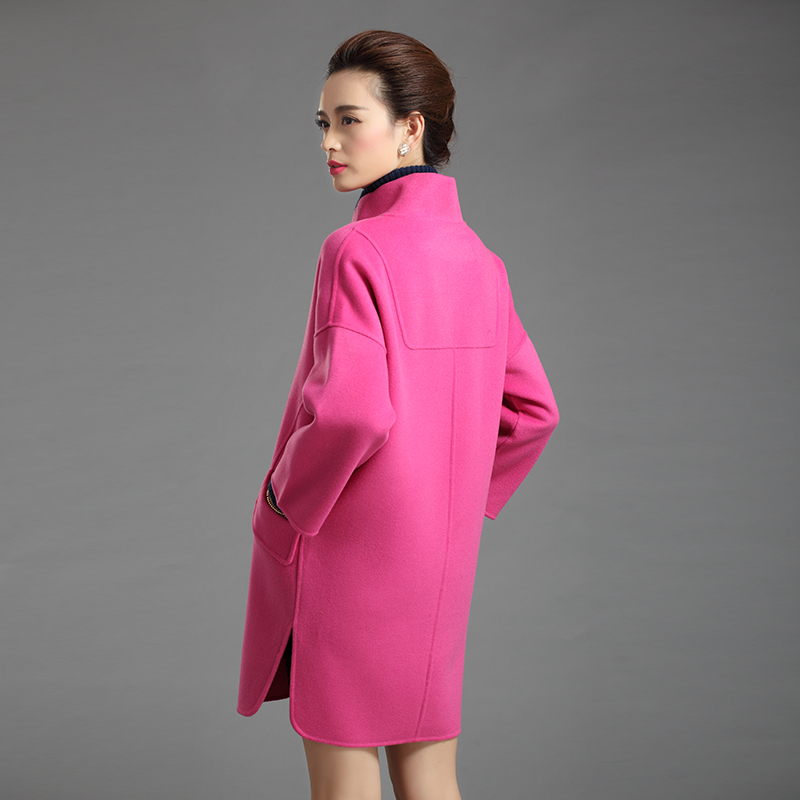 恒源祥秋冬宽松双面呢外套中长款开叉翻领羊毛大衣毛呢外套女装