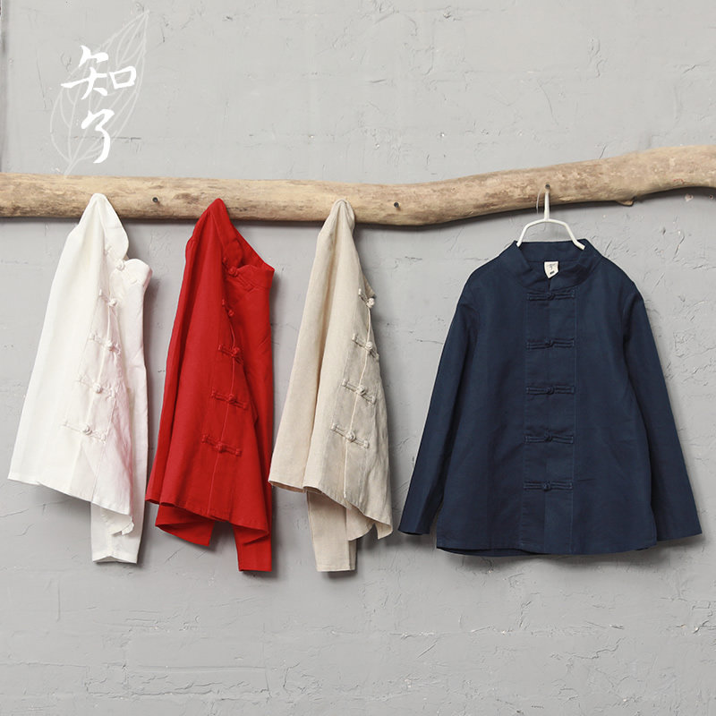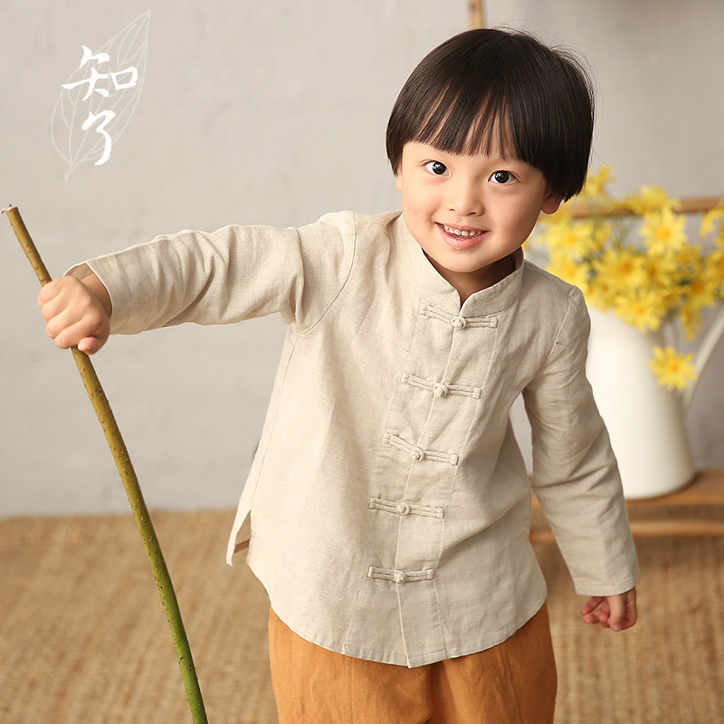 知了童装 秋季新品男童中式立领棉麻长袖盘扣衬衫上衣 K1245