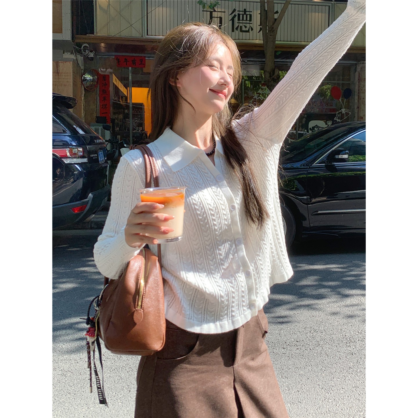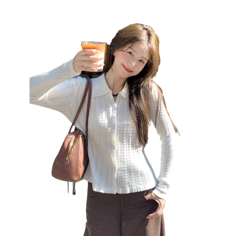 老钱风白色翻领长袖针织衫女秋季高级感打底衫设计感法式小资上衣