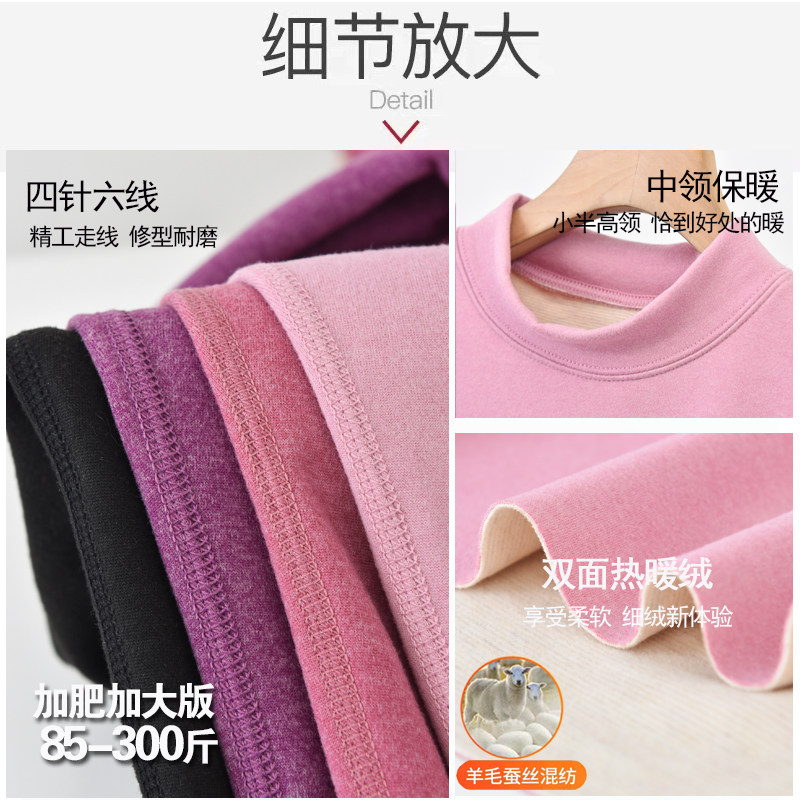 半高领保暖内衣女上衣加肥加大中领胖MM德绒秋衣圆领打底衫中老年