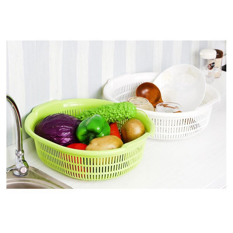 日本品质加厚双层洗菜篮沥水篮塑料厨房洗菜盆大号创意水果盘果篮