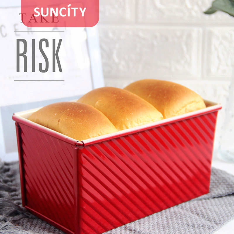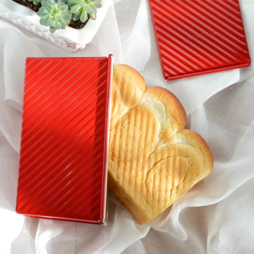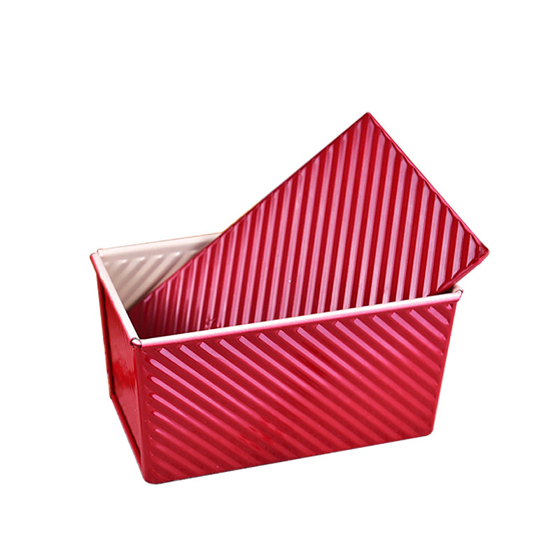 阳晨烘焙工具红色波纹不沾土司盒吐司模具不粘带盖面包蛋糕450g