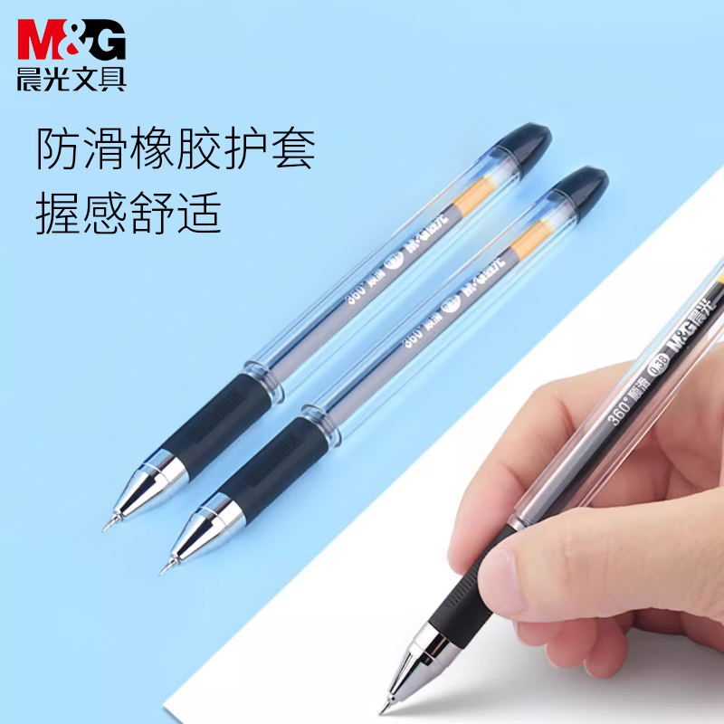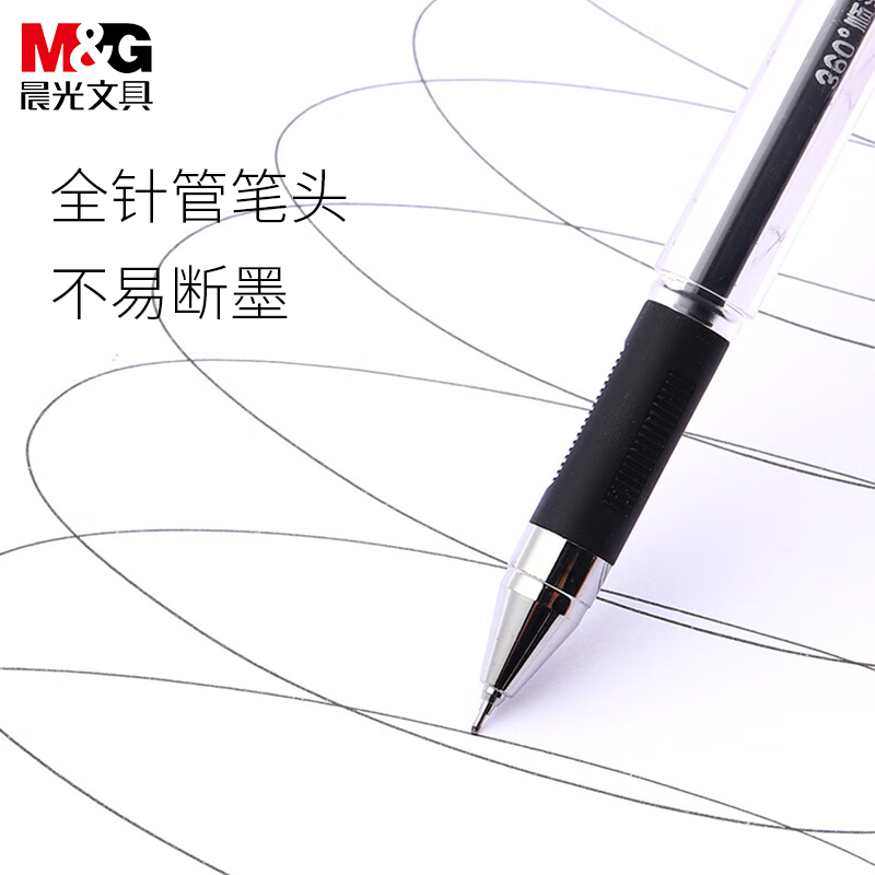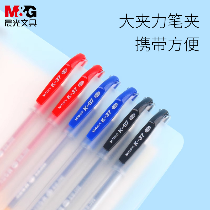晨光K37拔帽款0.38mm中性笔碳素黑细笔划签字笔学生用水笔碳素笔全针管小学生三年级黑色考试专用黑笔