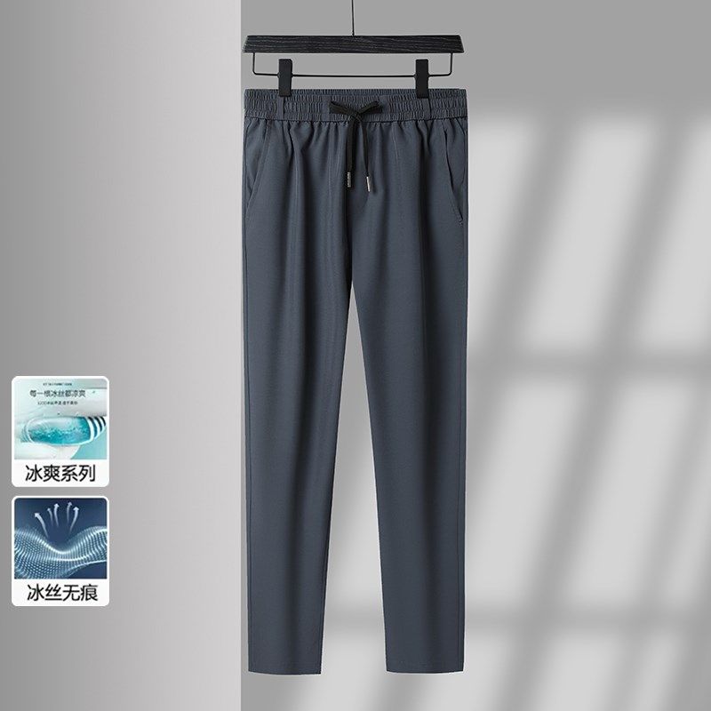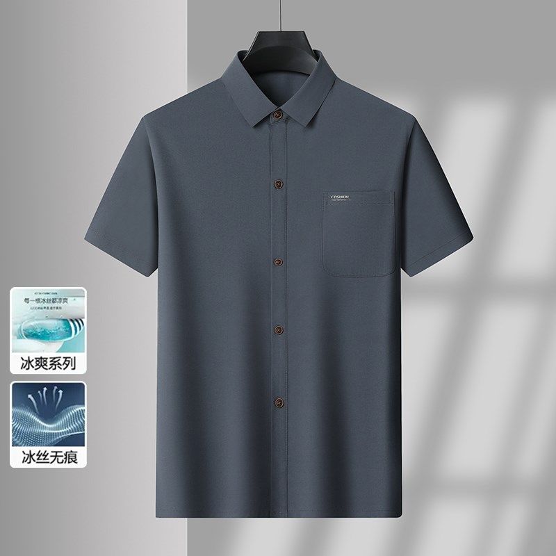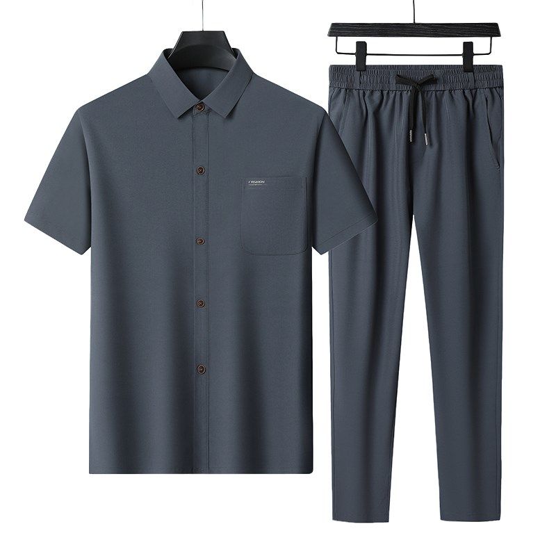 爸爸夏装套装冰丝长裤中年男士夏季短袖衬衫中老年人衬衣休闲衣服