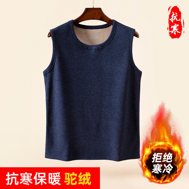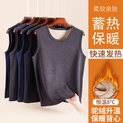 2025秋冬新款驼绒加厚羊羔绒保暖背心男士打底衫马甲内衣无袖坎肩