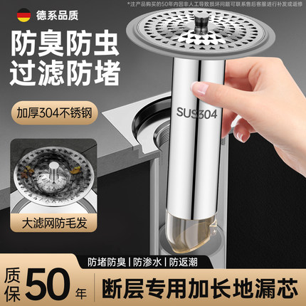 断层加长地漏芯防臭器卫生间下水道防虫过滤网盖不锈钢防反臭神器