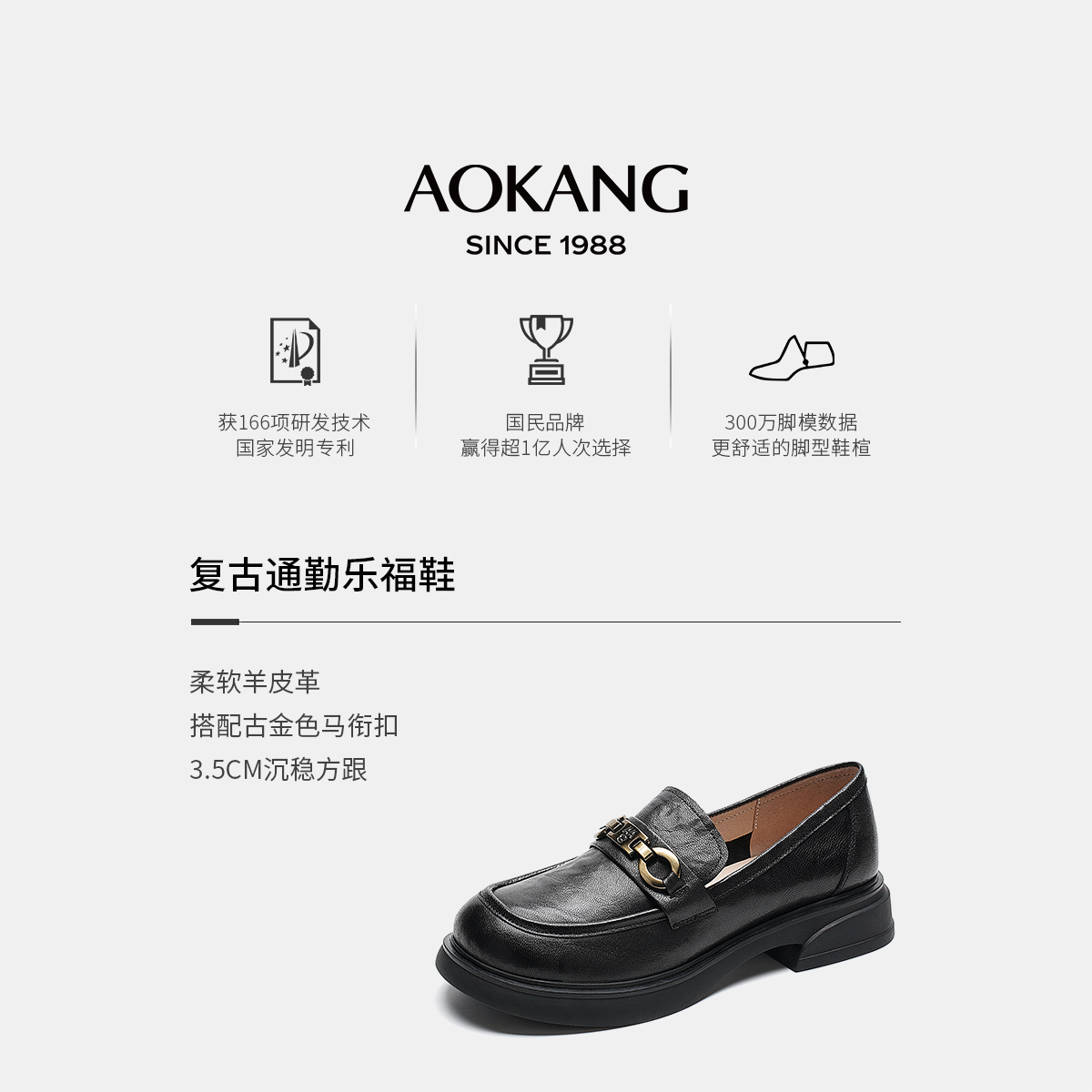 奥康女鞋英伦风真皮马衔扣乐福鞋