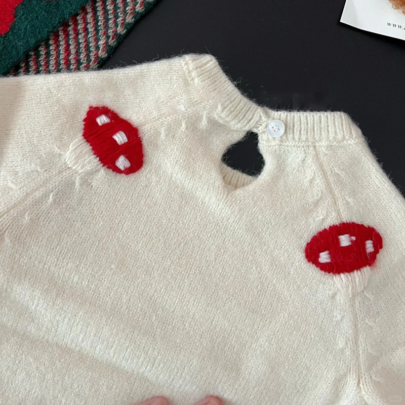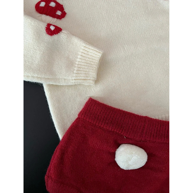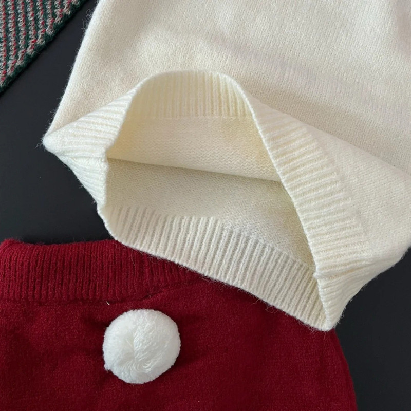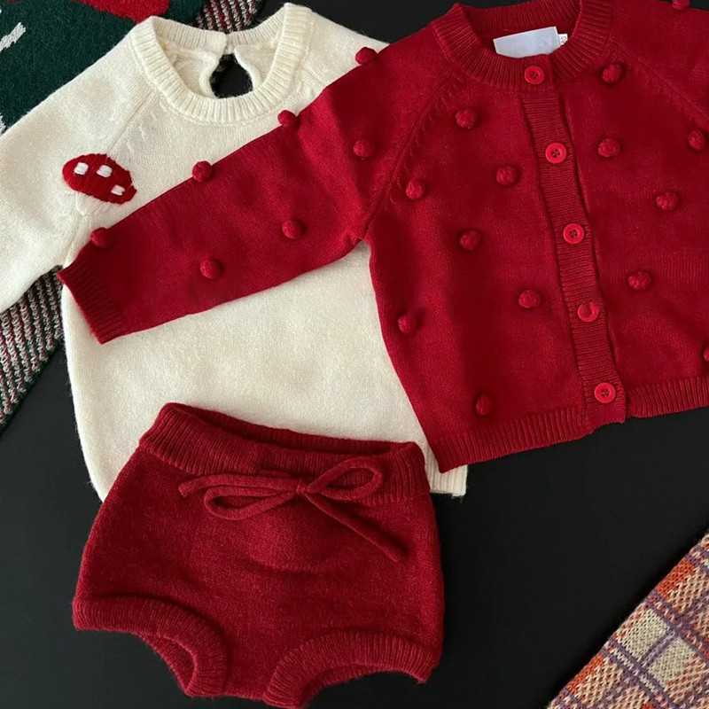 宝宝圣诞新年喜庆针织开衫秋冬韩版婴幼儿可爱毛球毛衣三角包屁裤