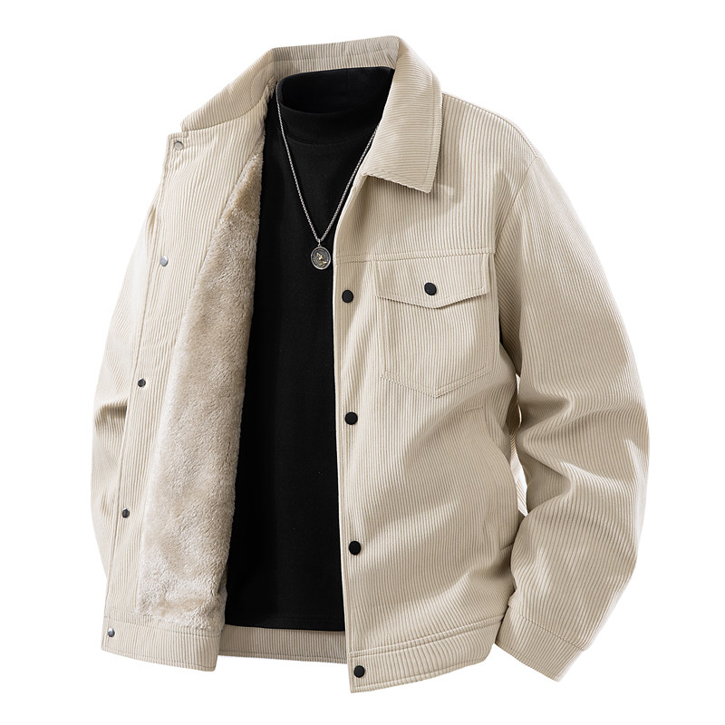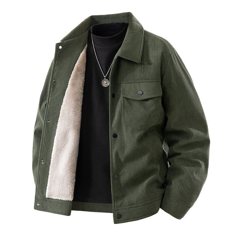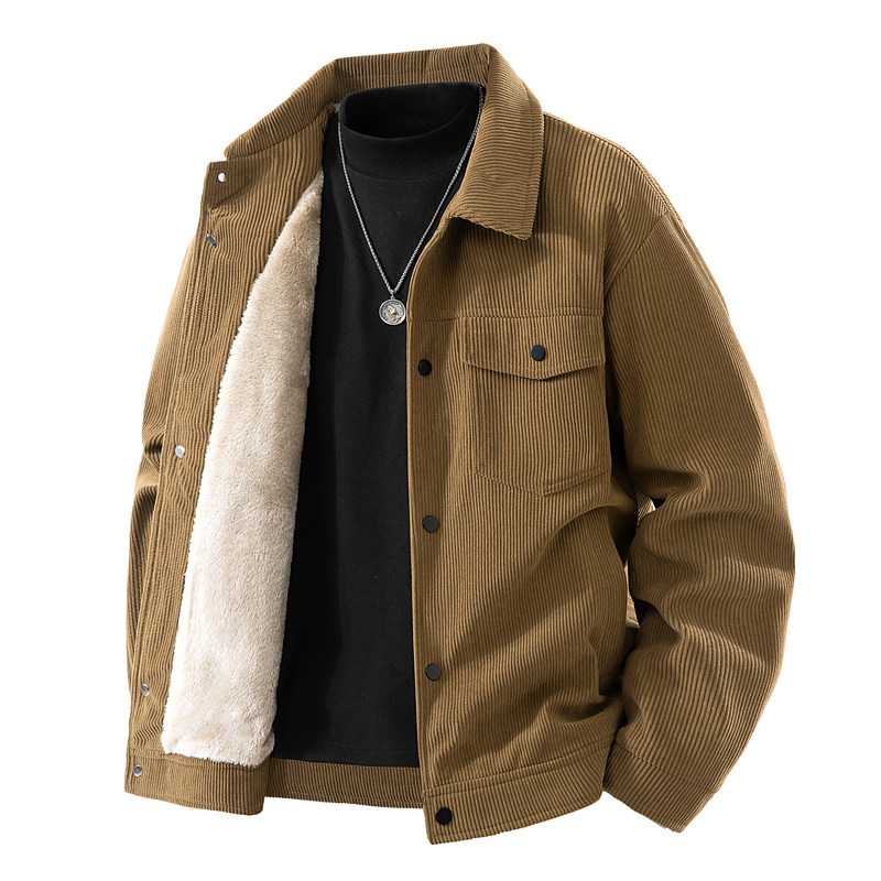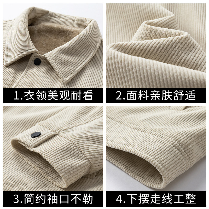 罗蒙秋冬季灯芯绒外套男士翻领工装宽松休闲加绒加厚夹克上衣男装