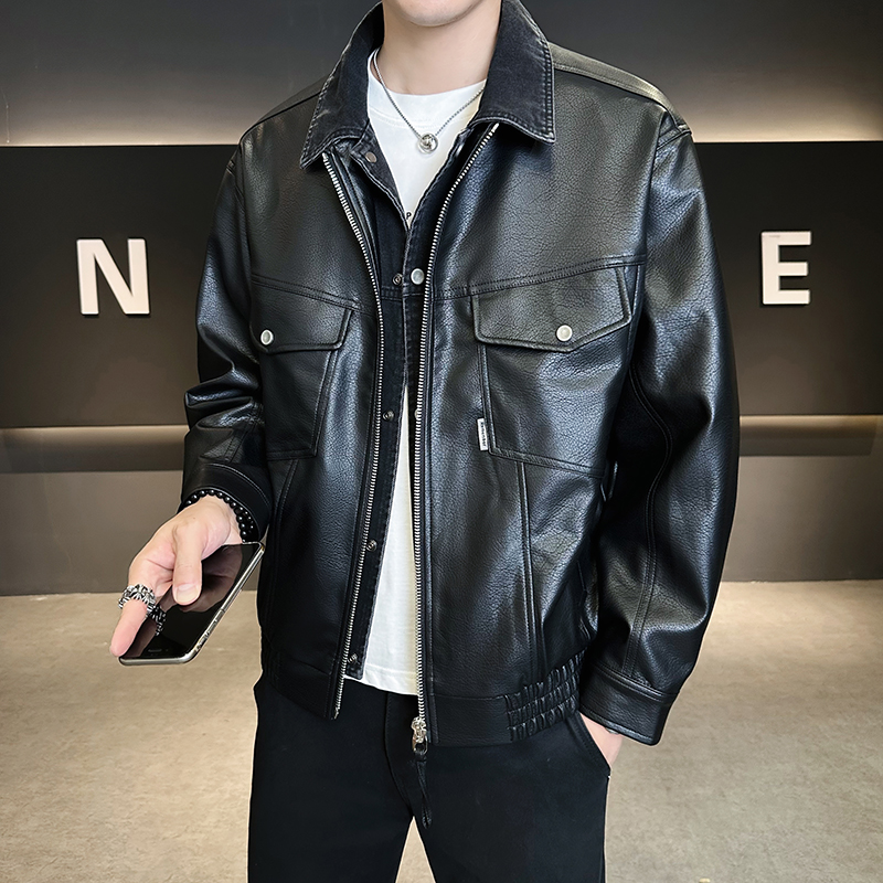 假两件皮衣外套男2025新款春秋款潮流休闲高级感男装PU皮夹克男款